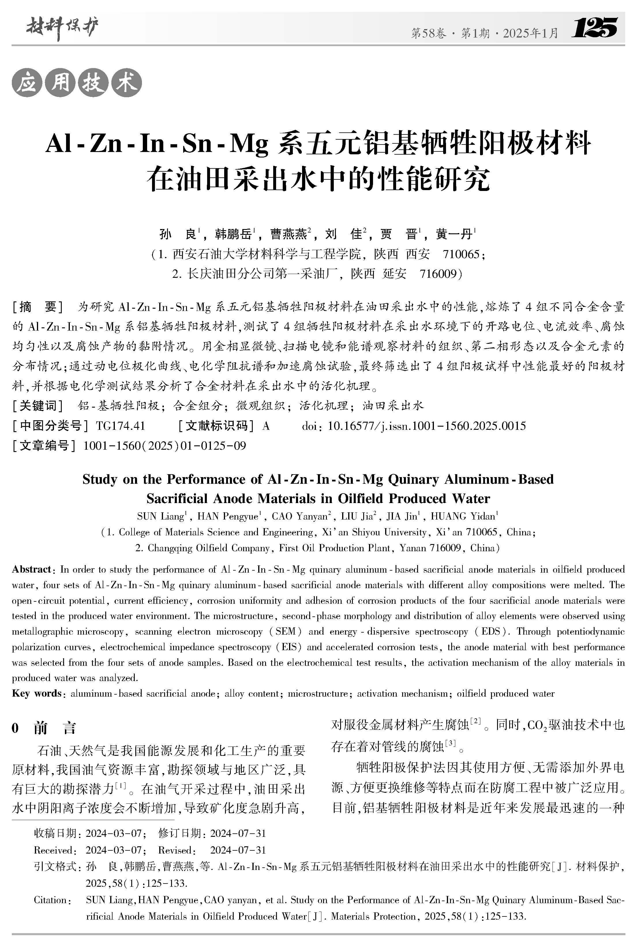 Al-Zn-In-Sn-Mg系五元铝基牺牲阳极材料在油田采出水中的性能研究