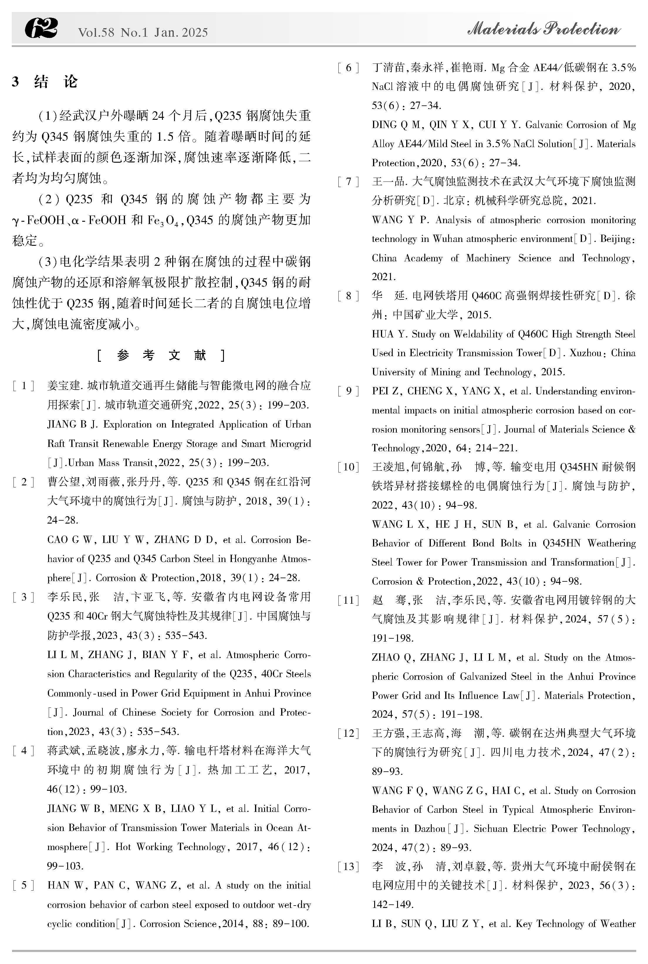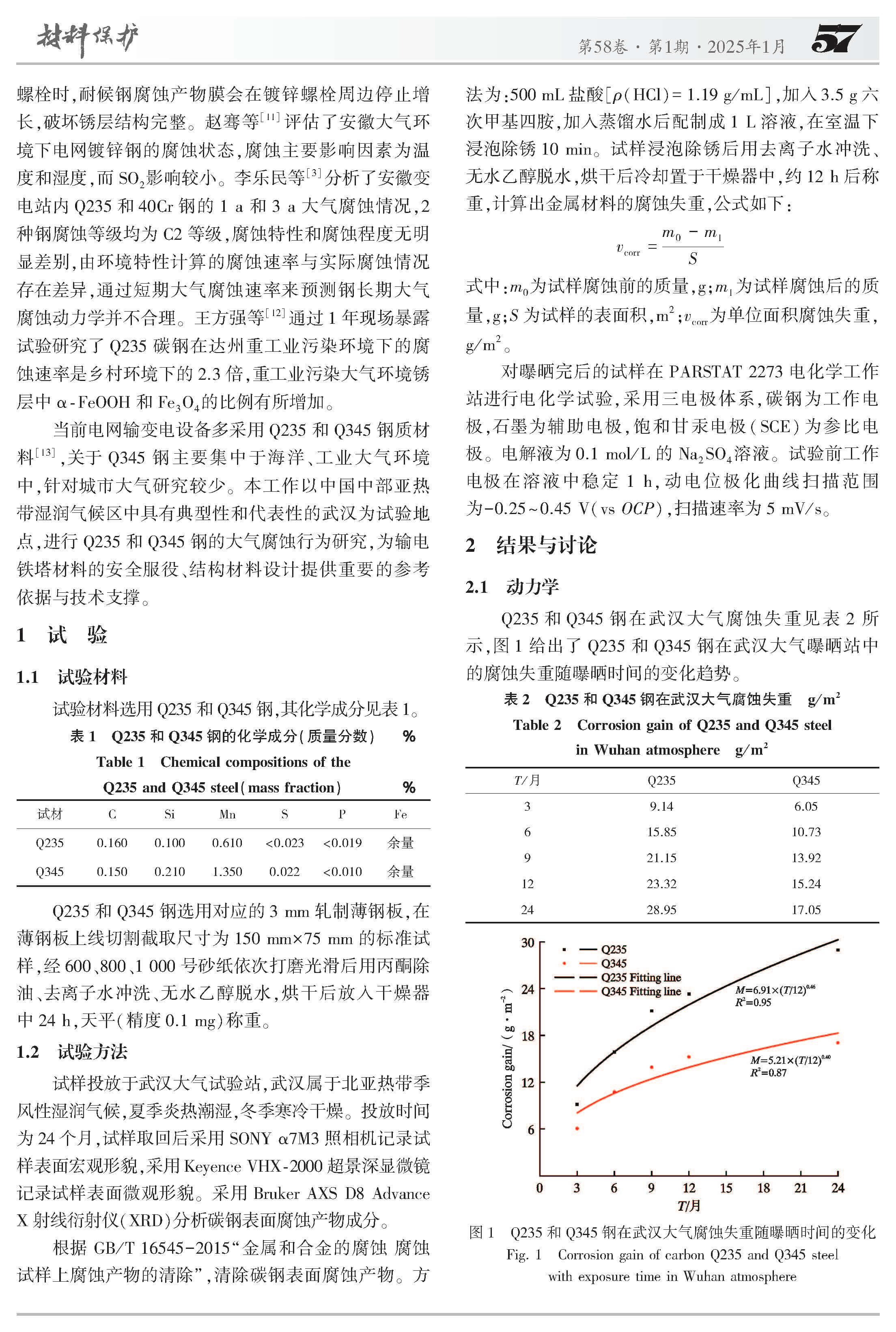 Q235和Q345钢在武汉大气环境中24个月的腐蚀行为