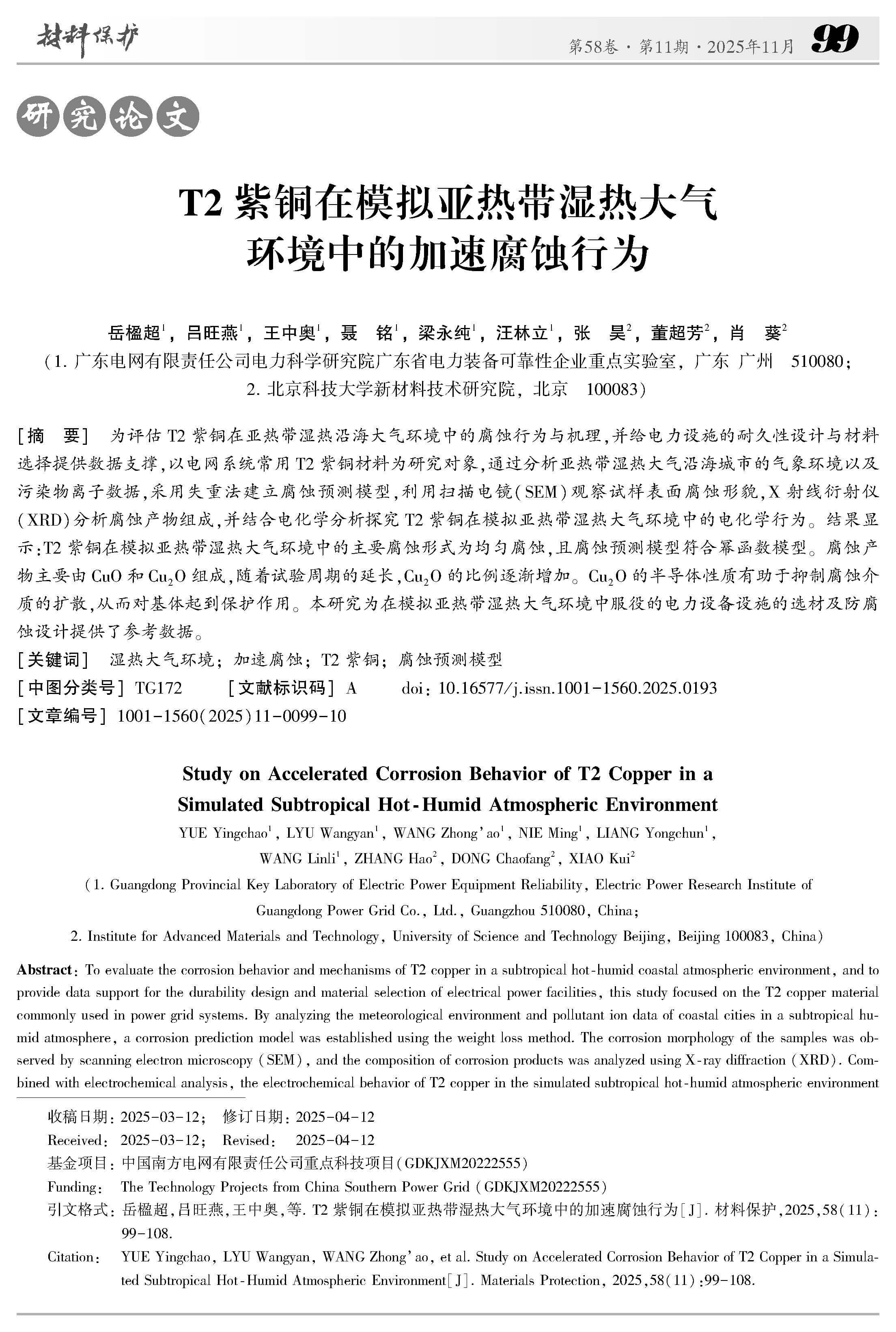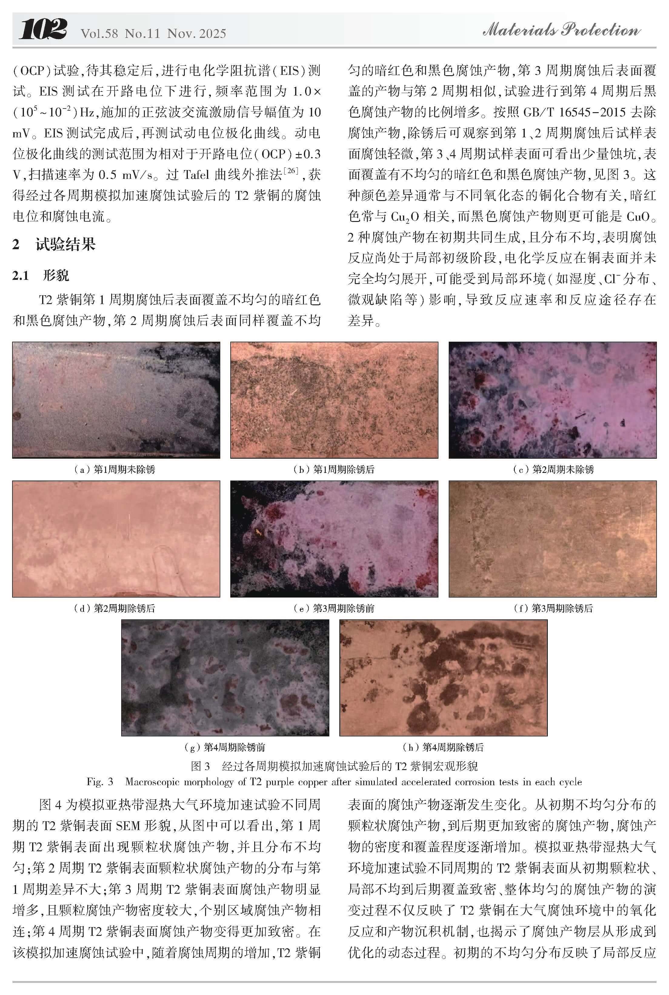 T2紫铜在模拟亚热带湿热大气环境中的加速腐蚀行为