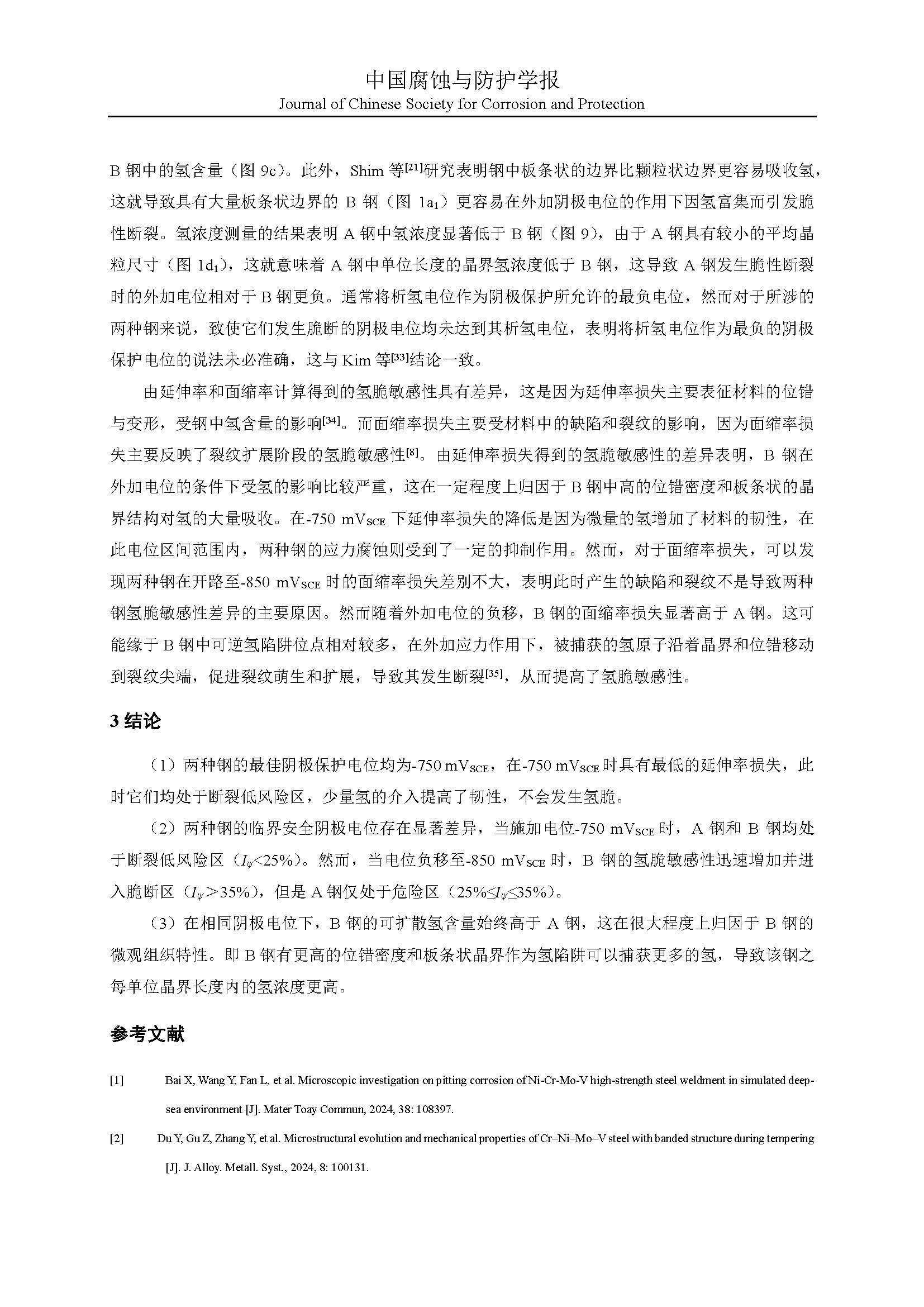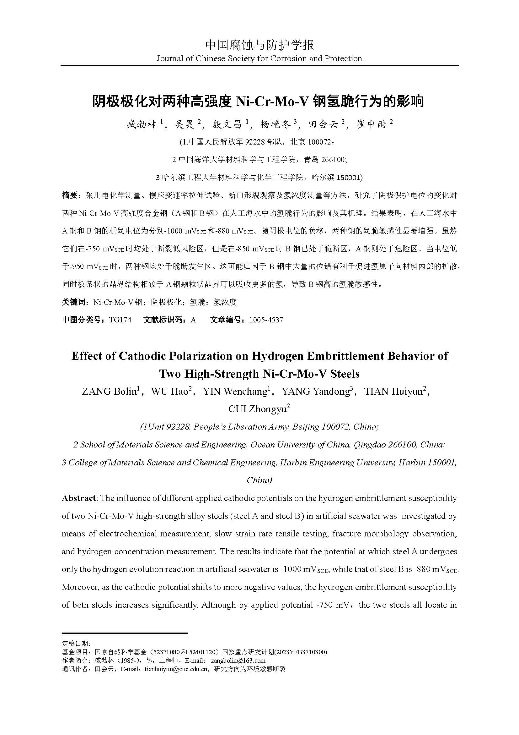阴极极化对两种高强度Ni-Cr-Mo-V钢氢脆行为的影响