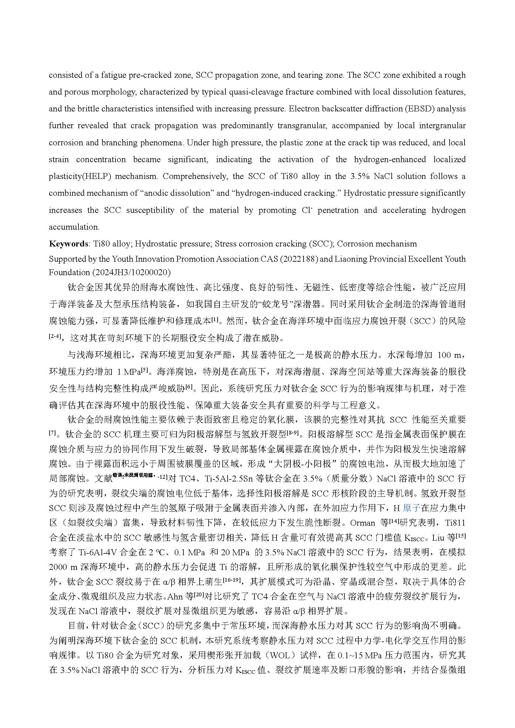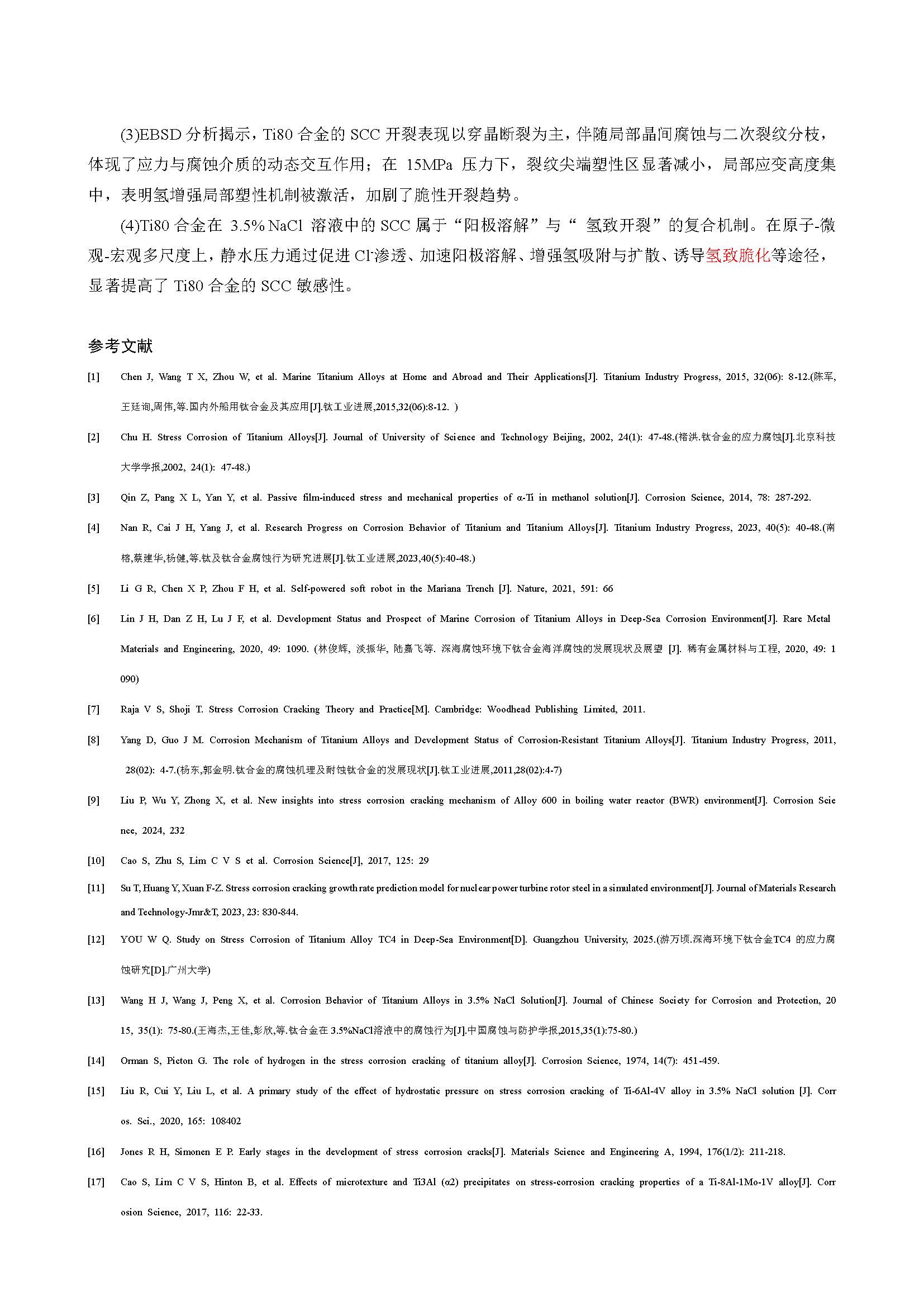 在3.5%NaCl溶液中压力变化对Ti80合金应力腐蚀行为的影响