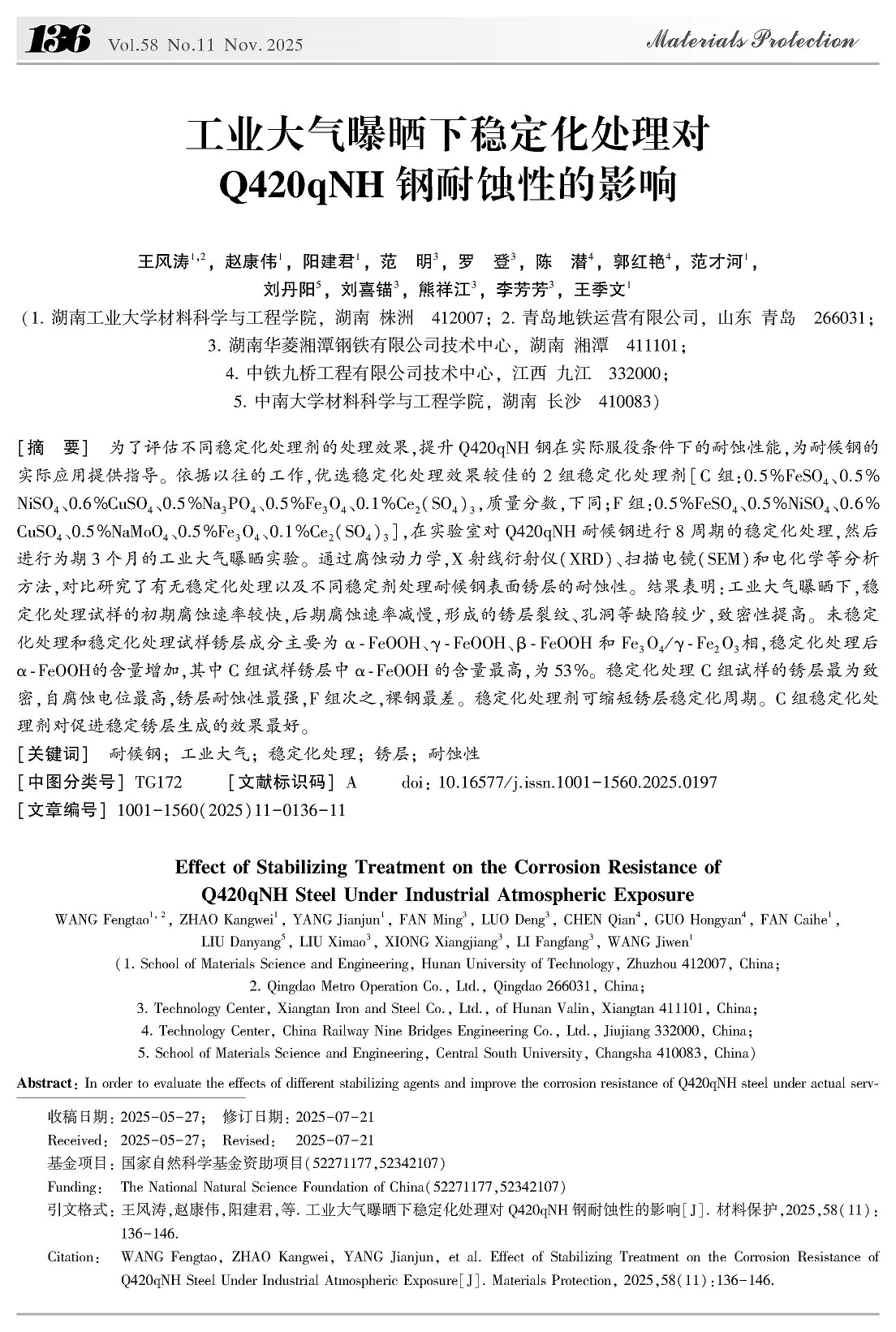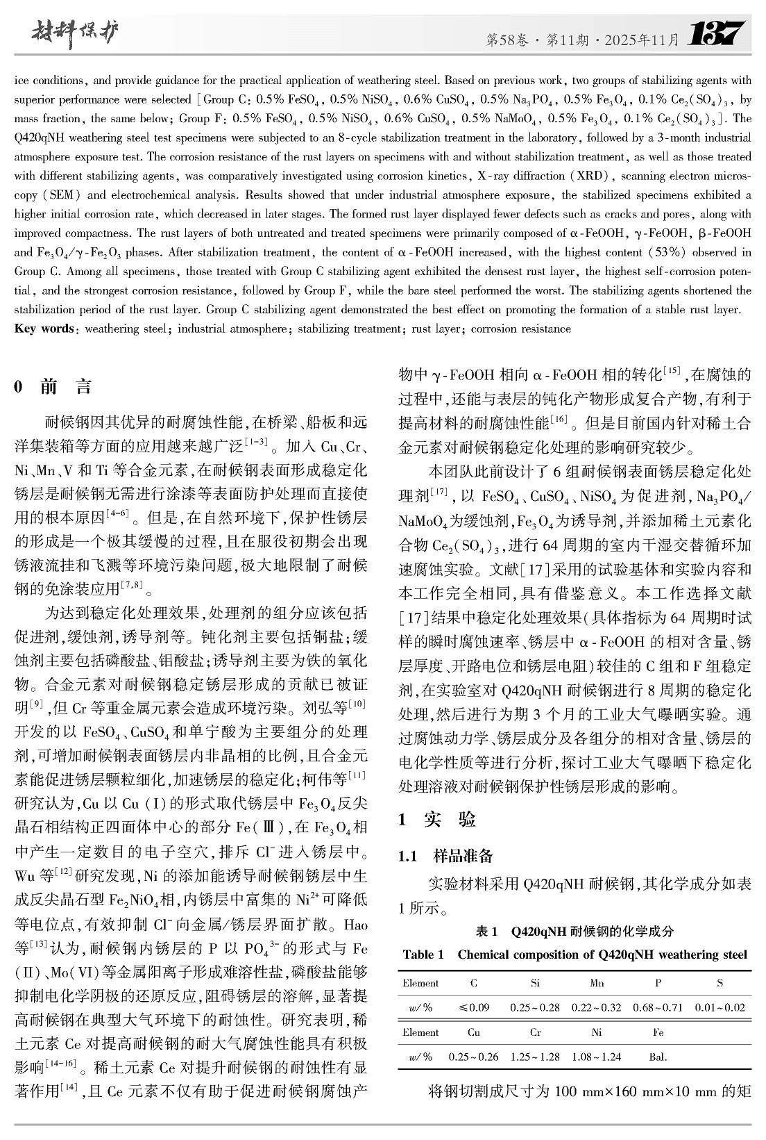 工业大气曝晒下稳定化处理对Q420qNH钢耐蚀性的影响
