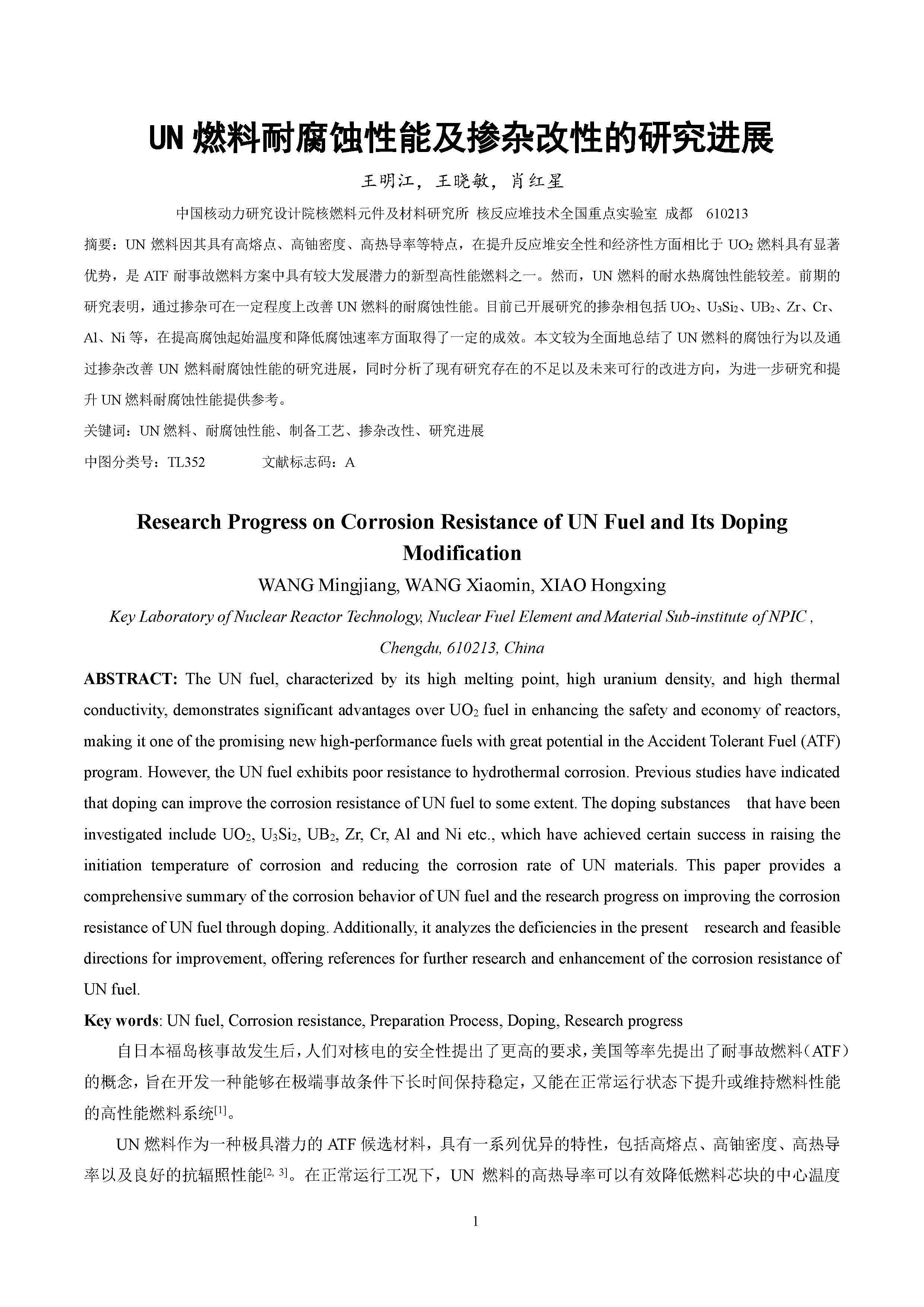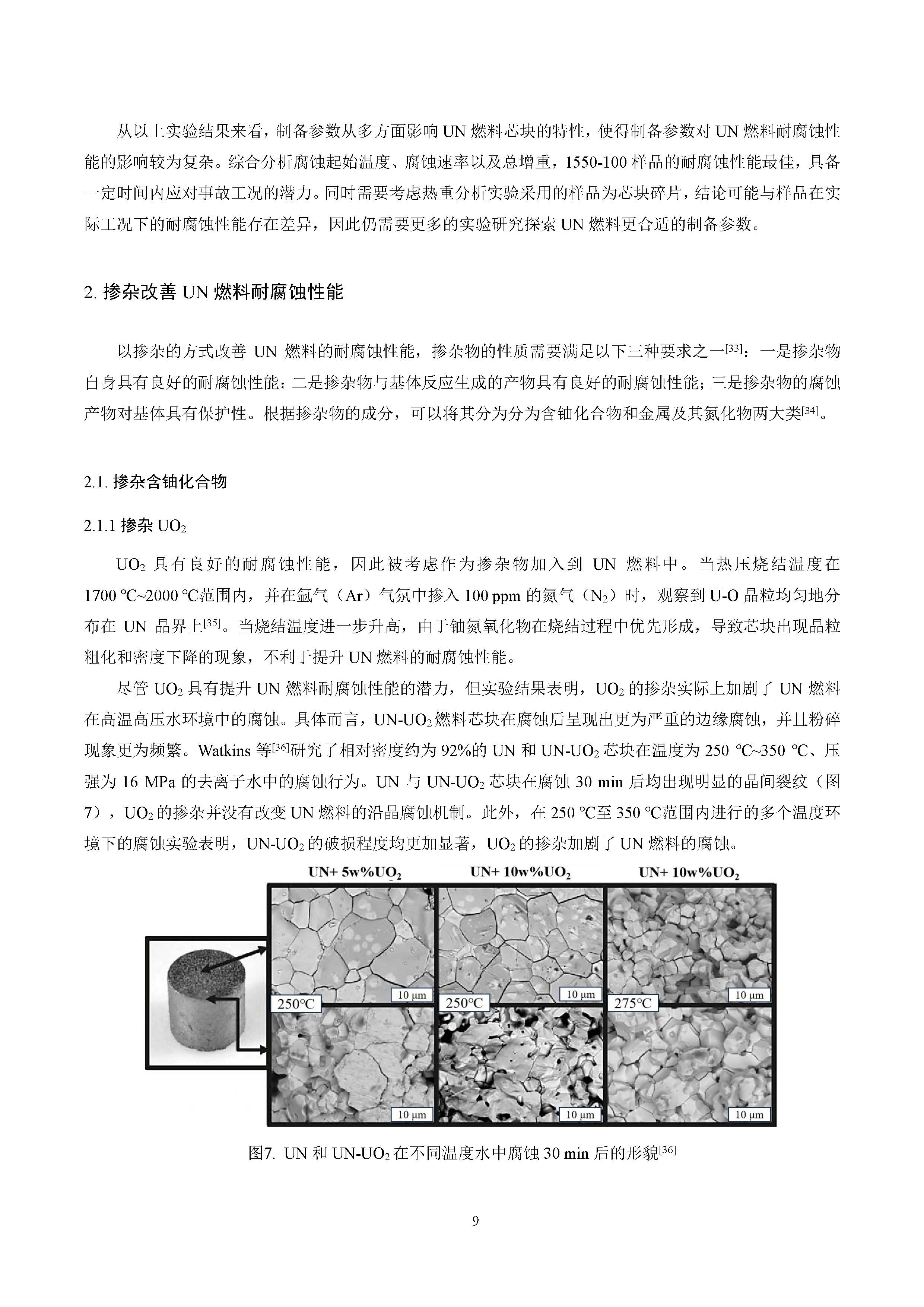 UN燃料耐腐蚀性能及掺杂改性的研究进展