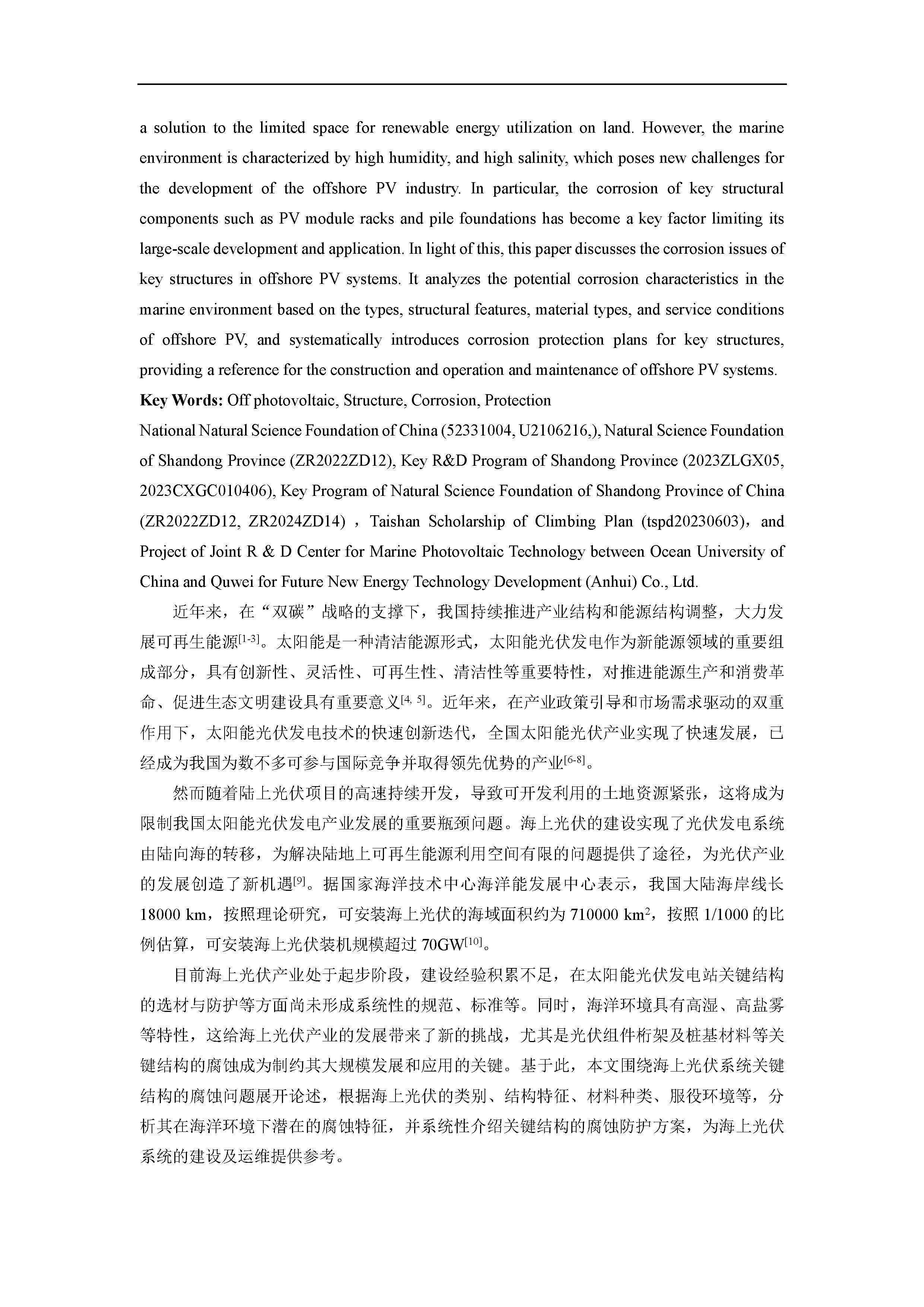 海上光伏关键结构的腐蚀与防护综述
