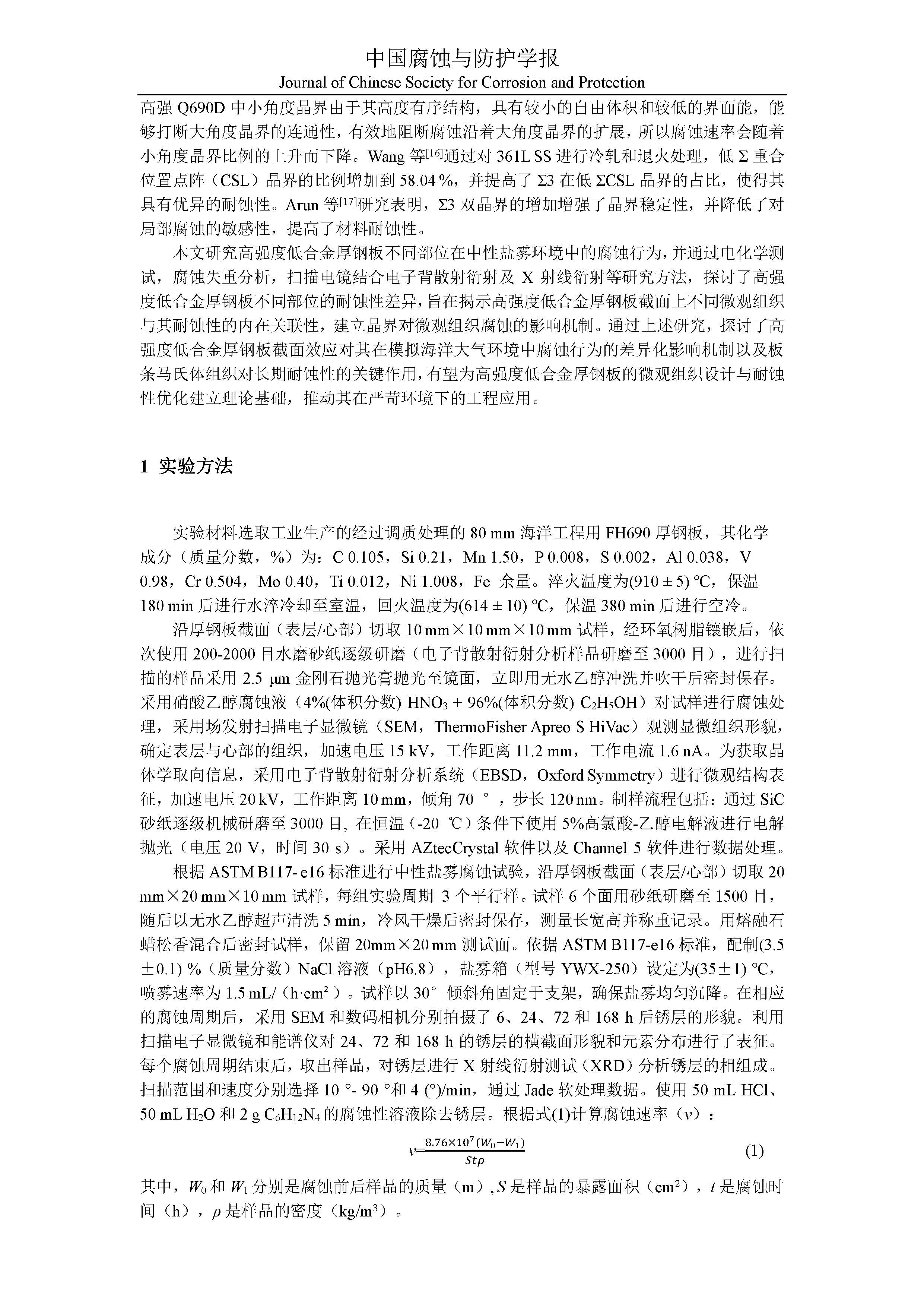来源:中国腐蚀与防护学报