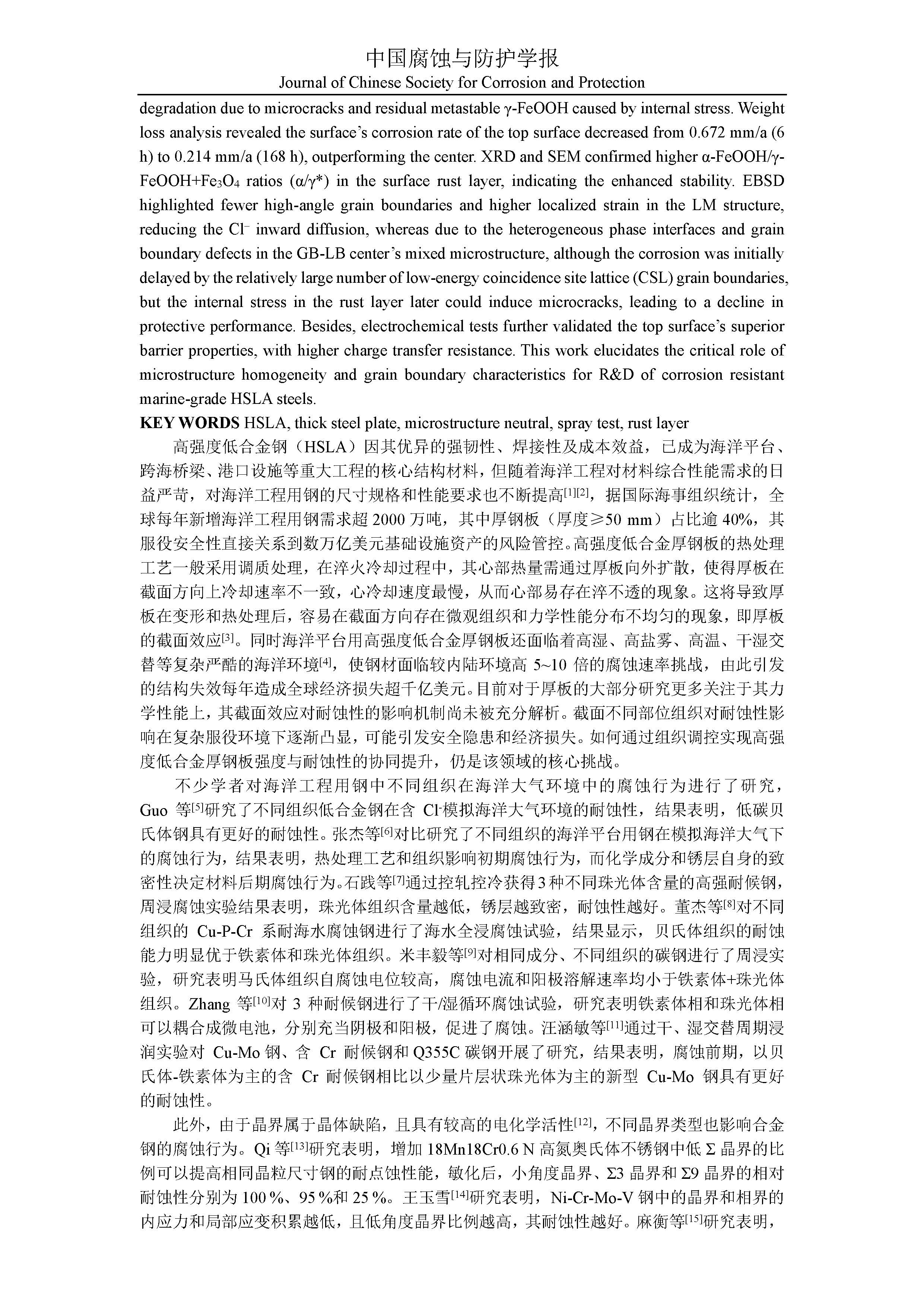 高强度低合金厚钢板在模拟海洋大气环境中的腐蚀行为
