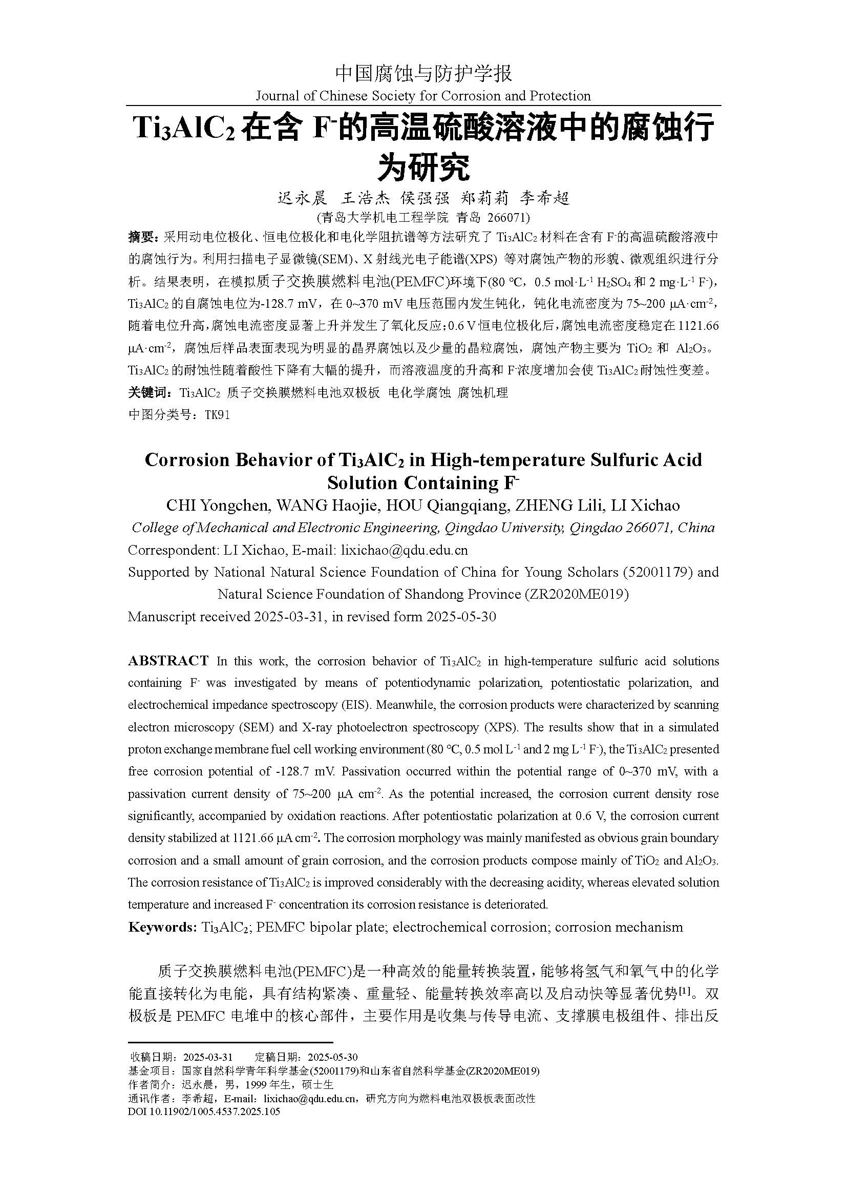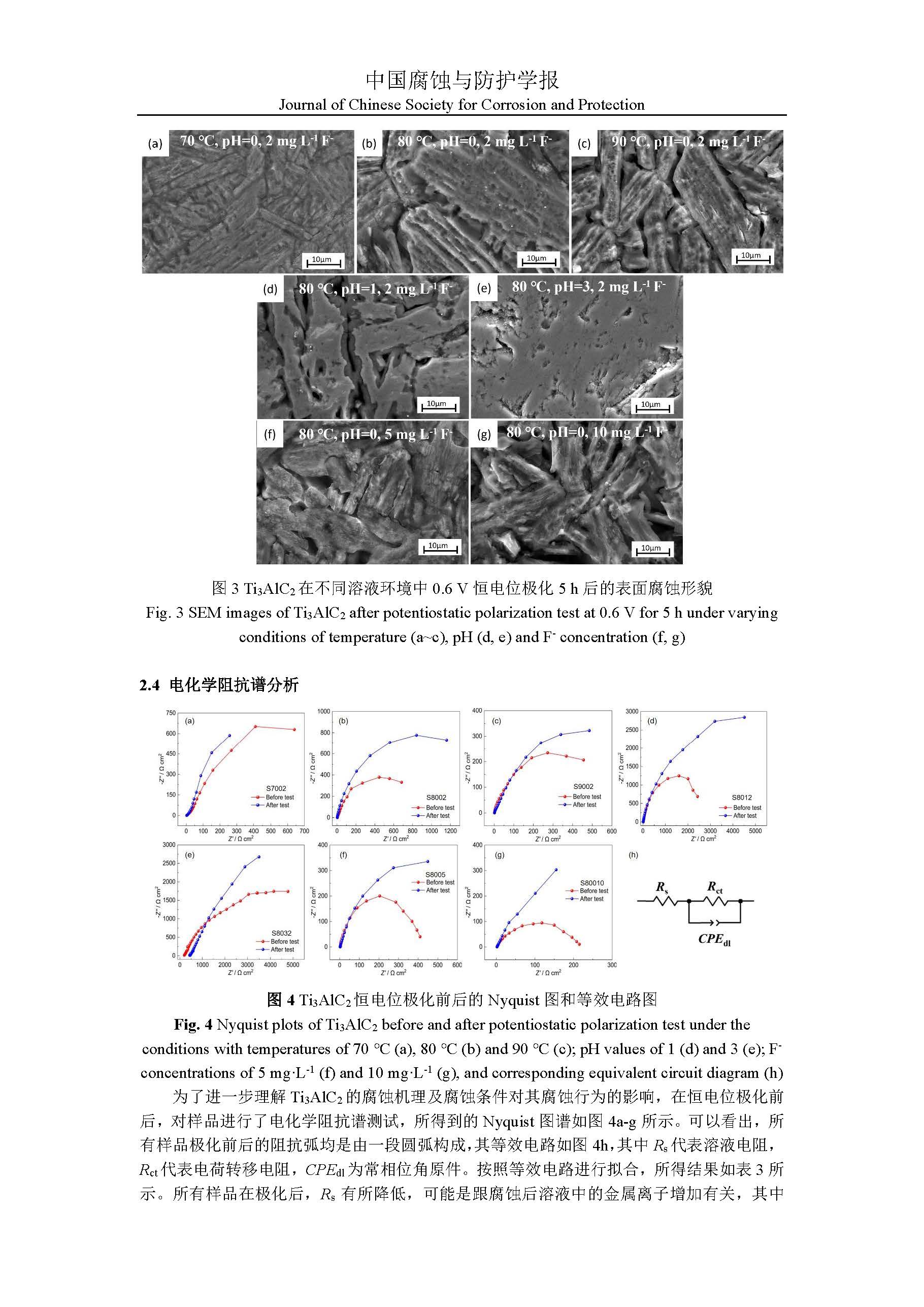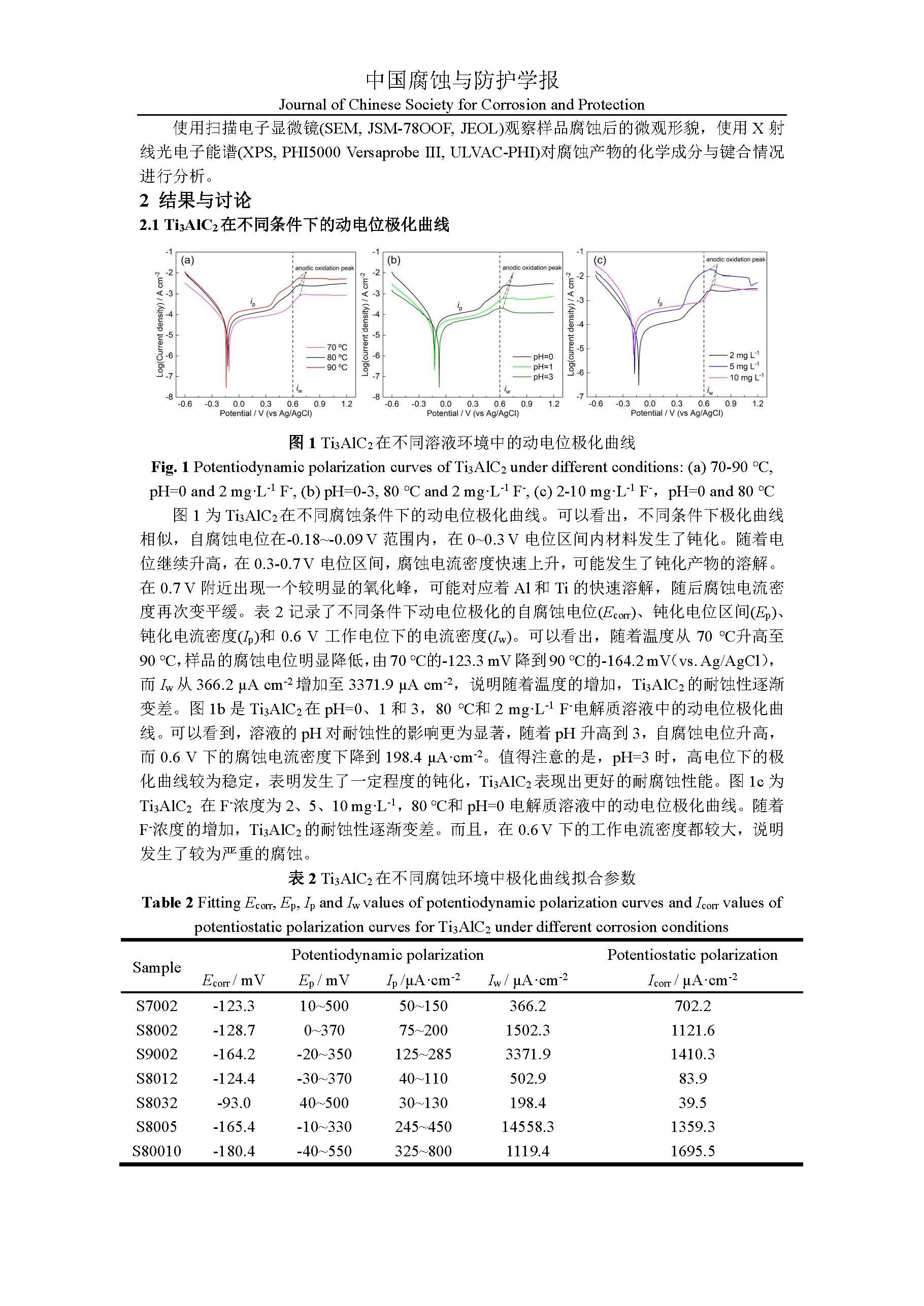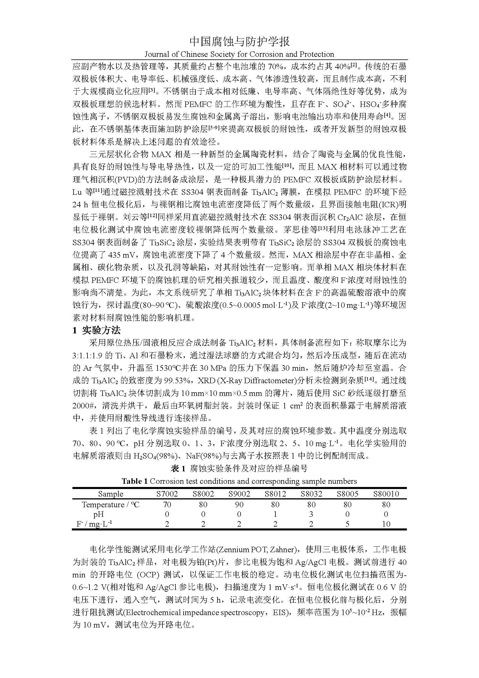 Ti3AlC2在含 F-的高温硫酸溶液中的腐蚀行为研究