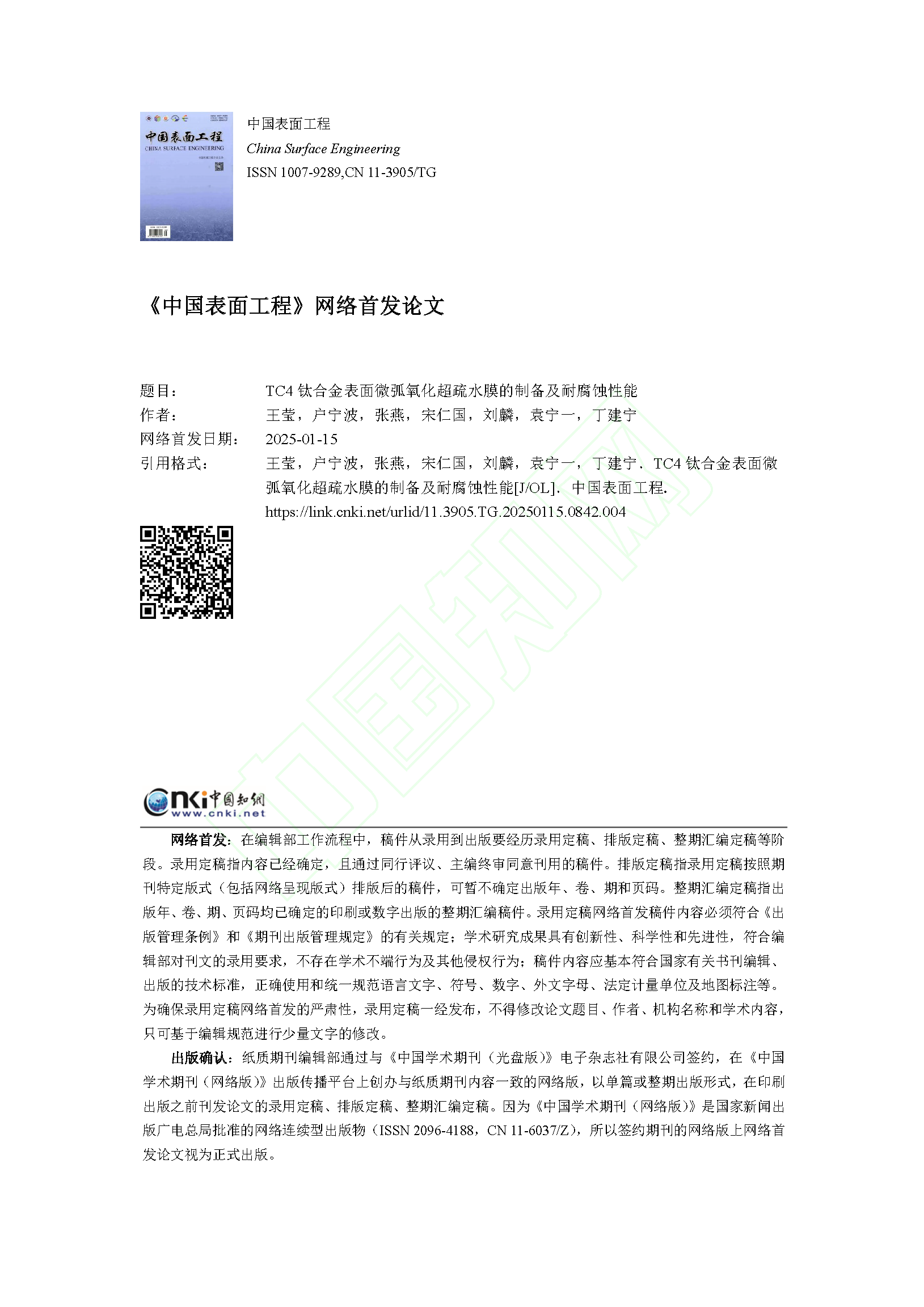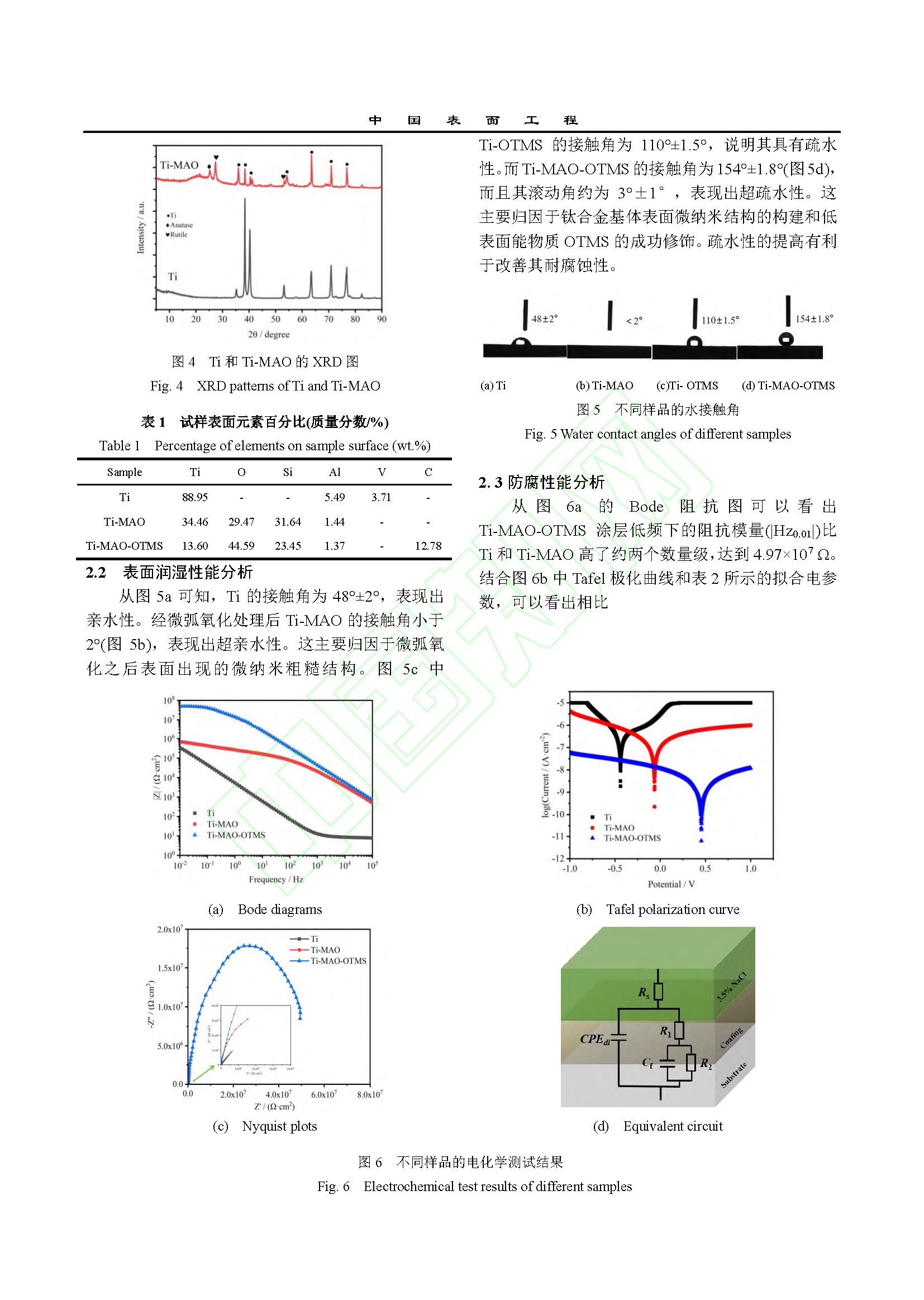TC4 钛合金表面微弧氧化超疏水膜的制备 及耐腐蚀性能