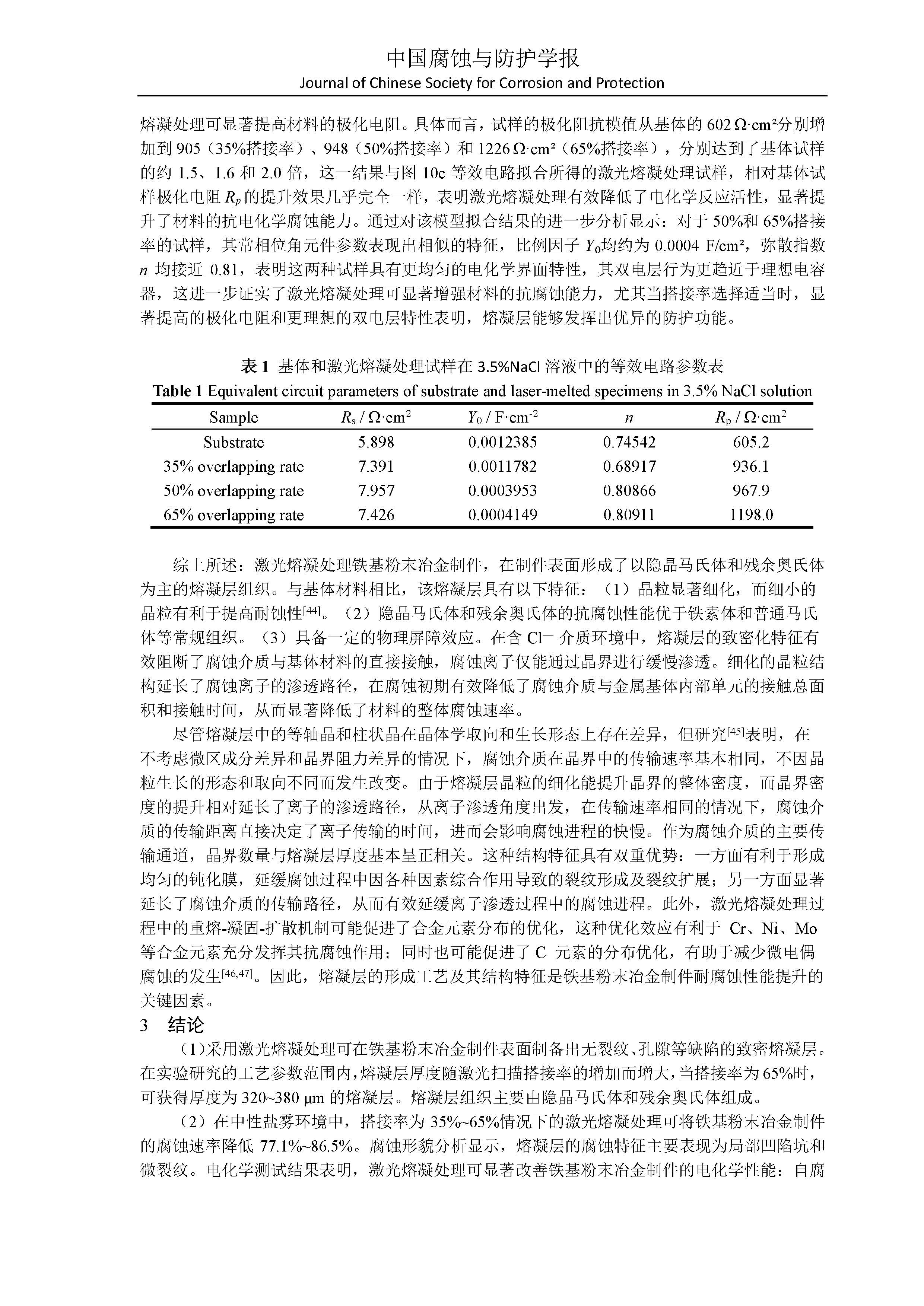 激光熔凝表面改性铁基粉末冶金材料腐蚀防护机理