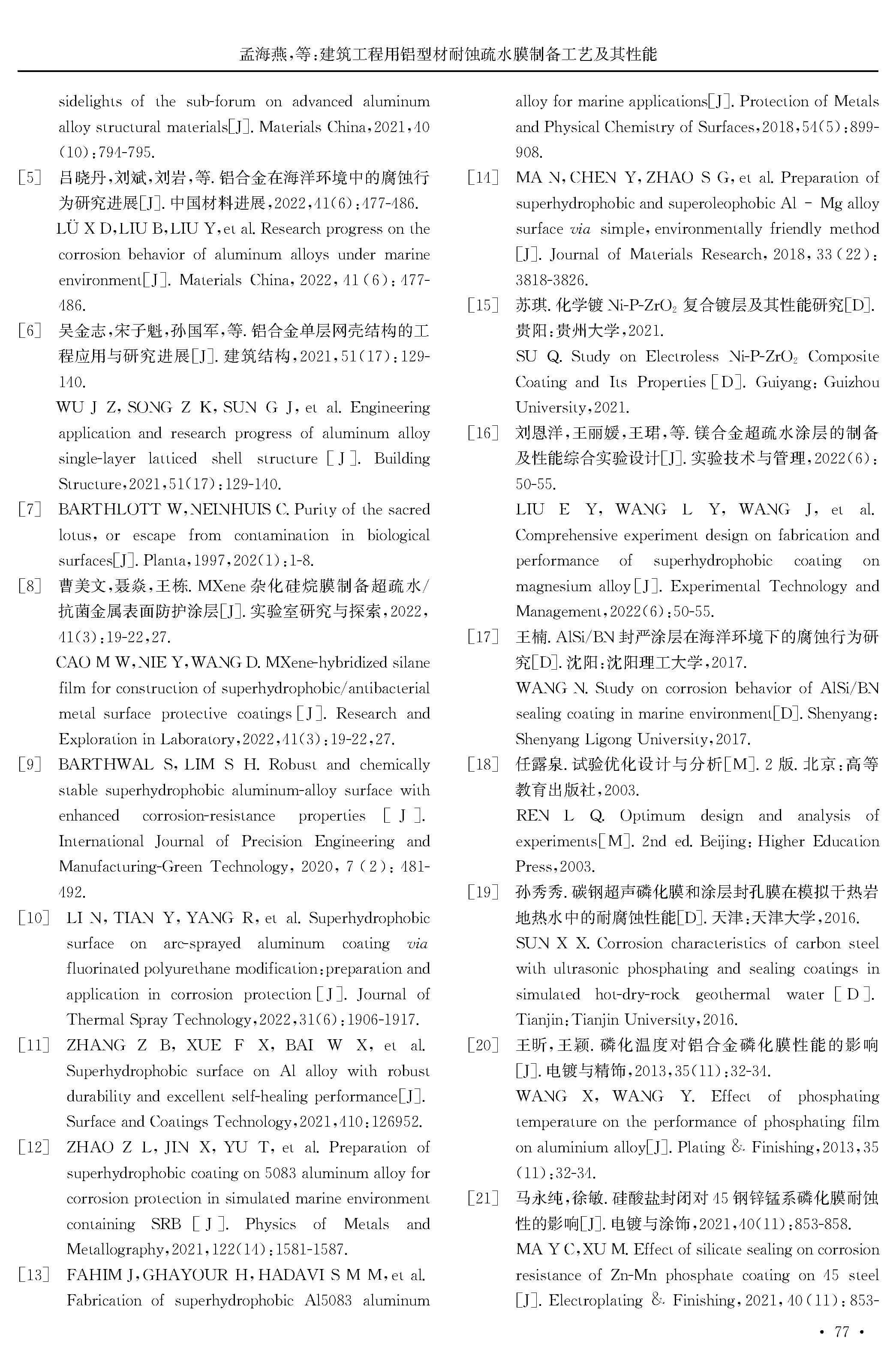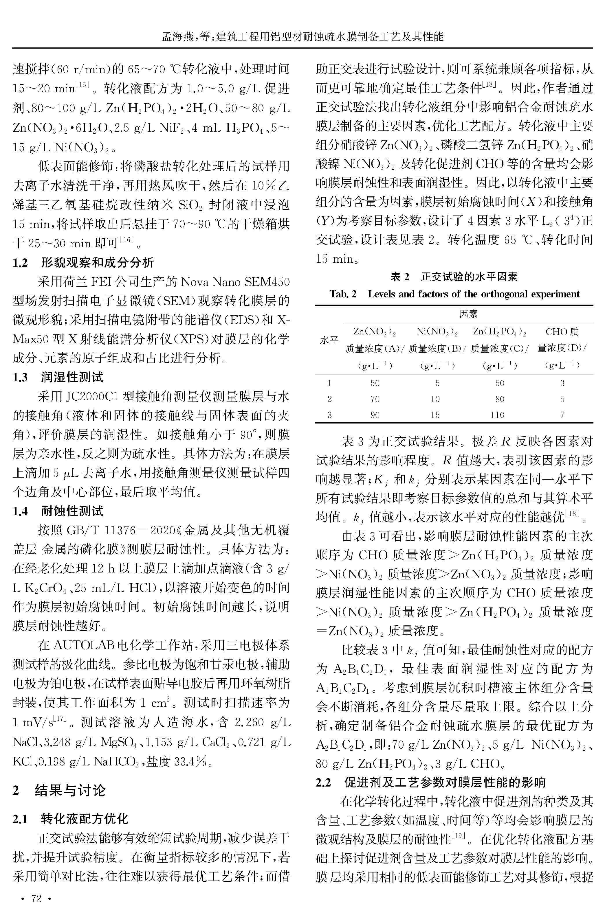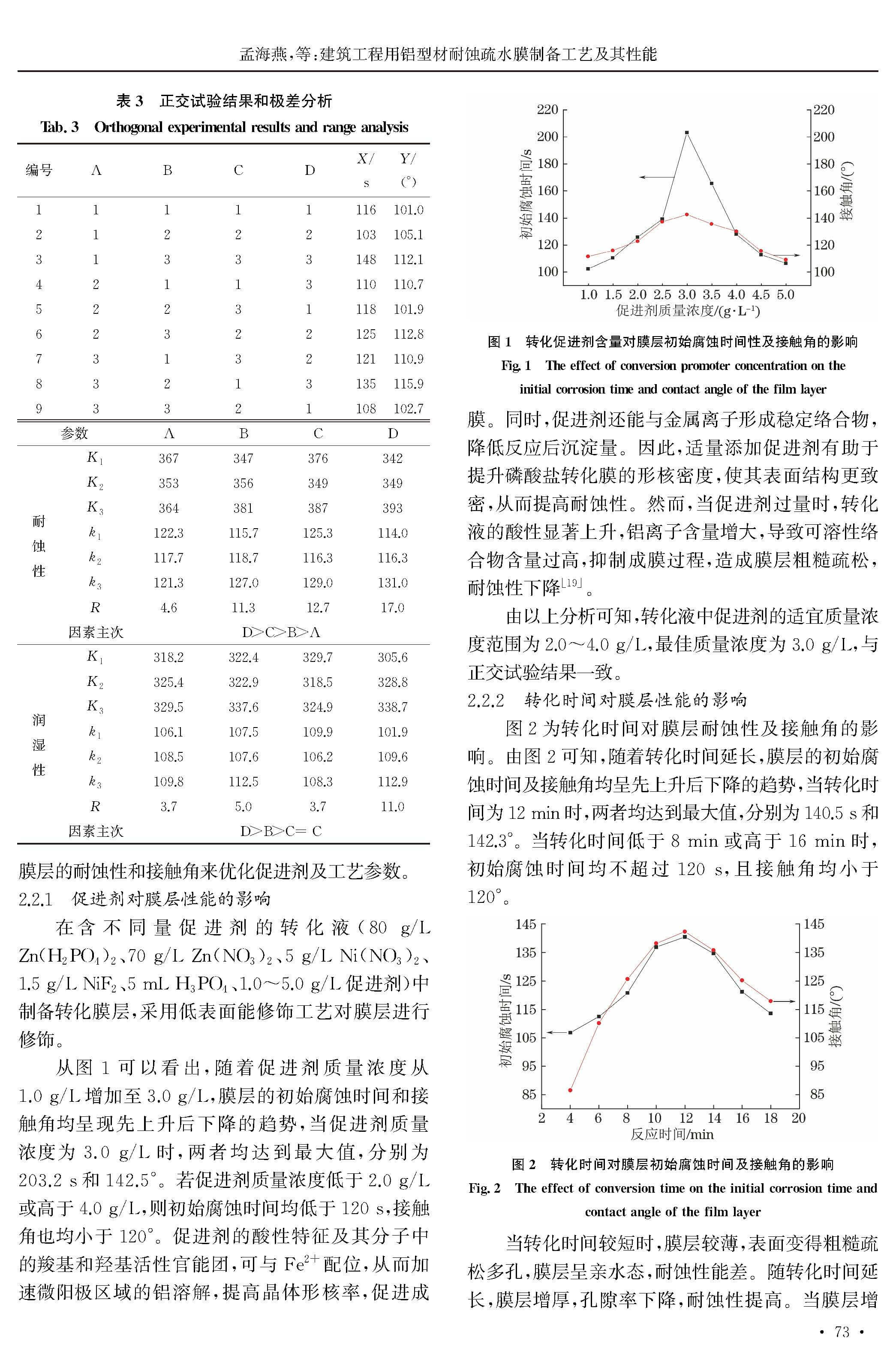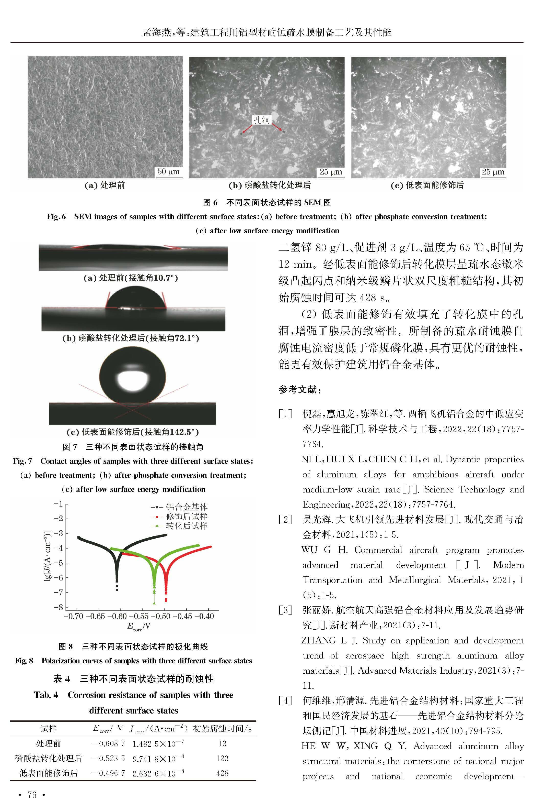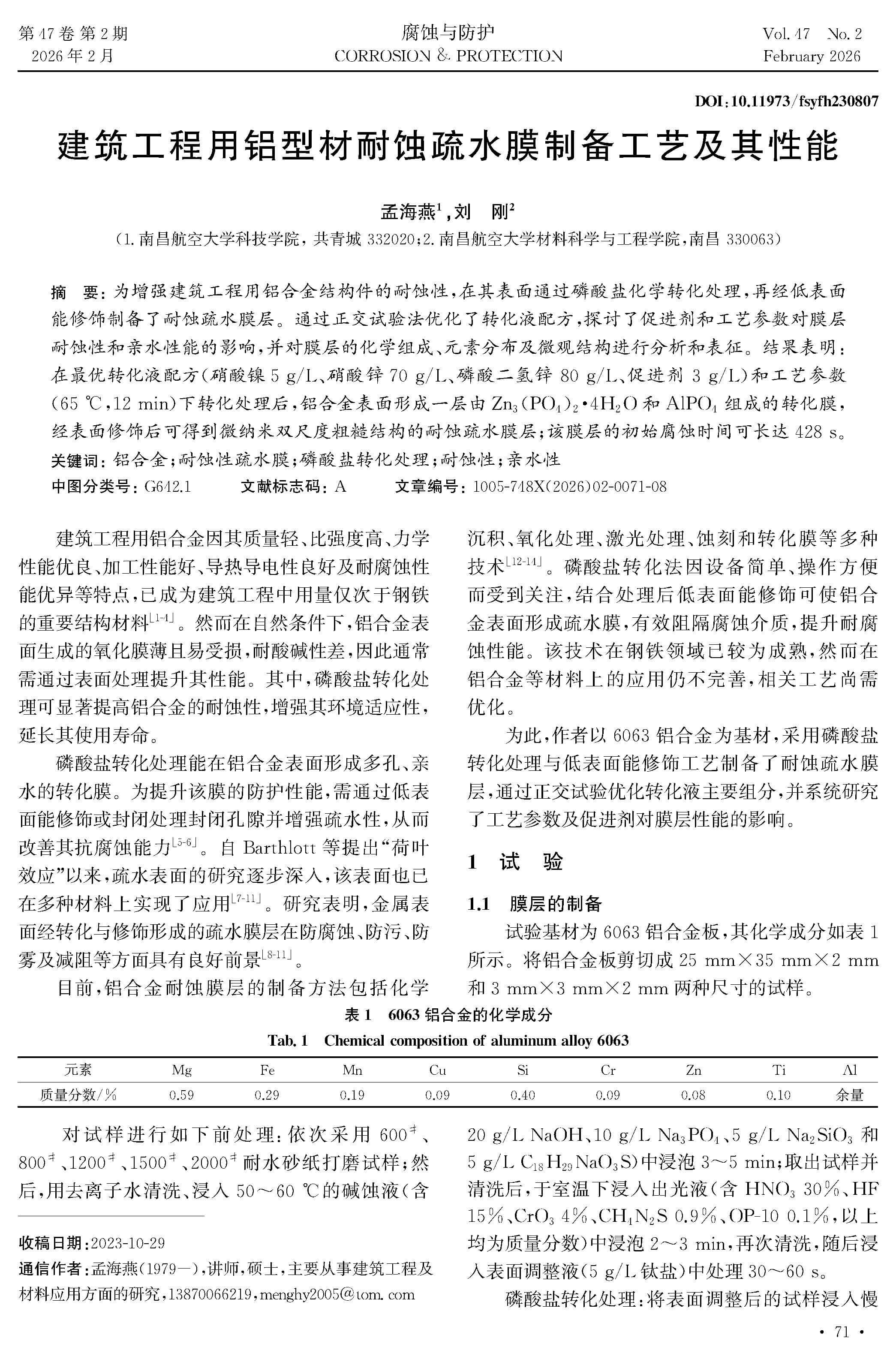 建筑工程用铝型材耐蚀疏水膜制备工艺及其性能