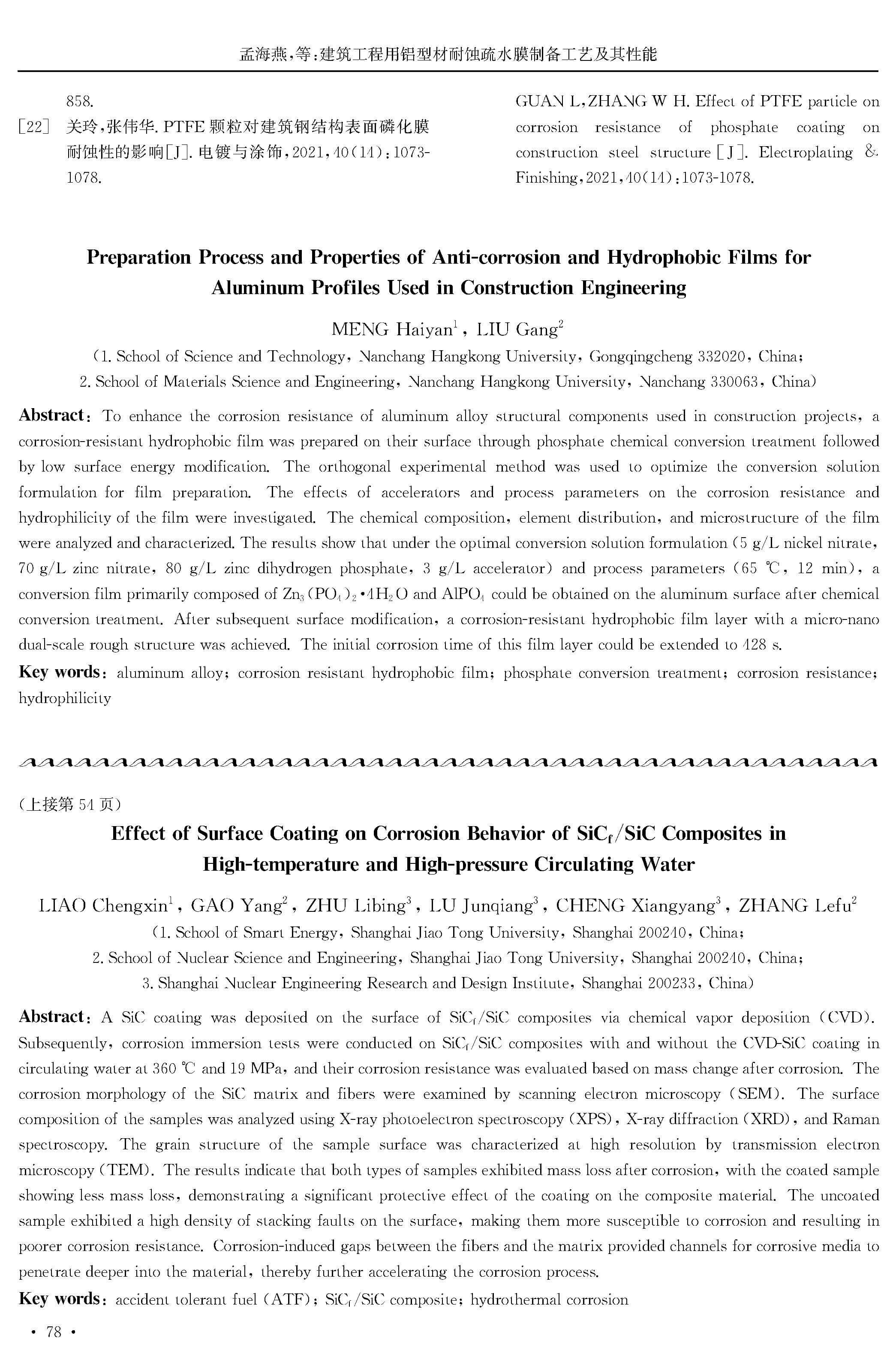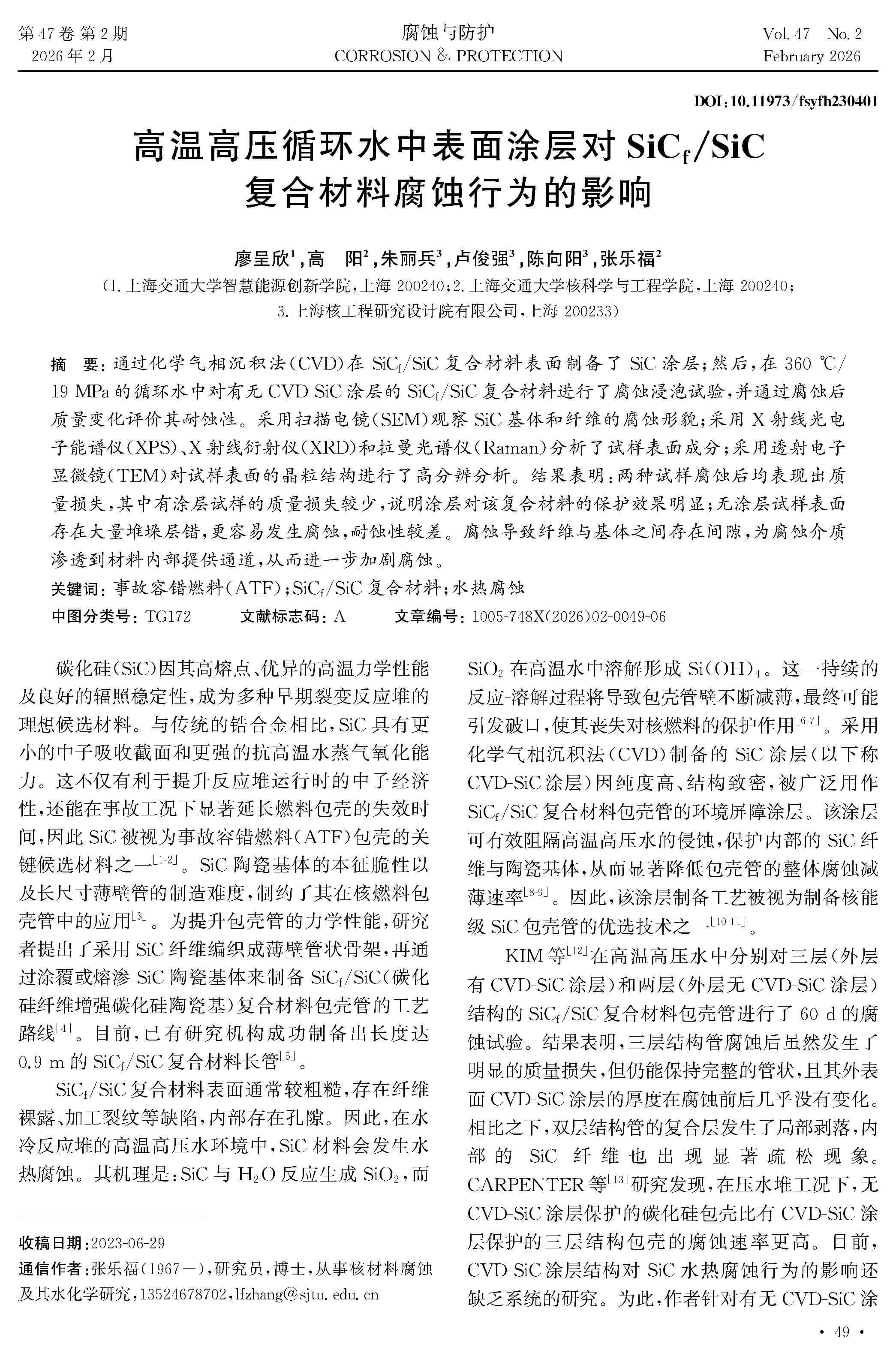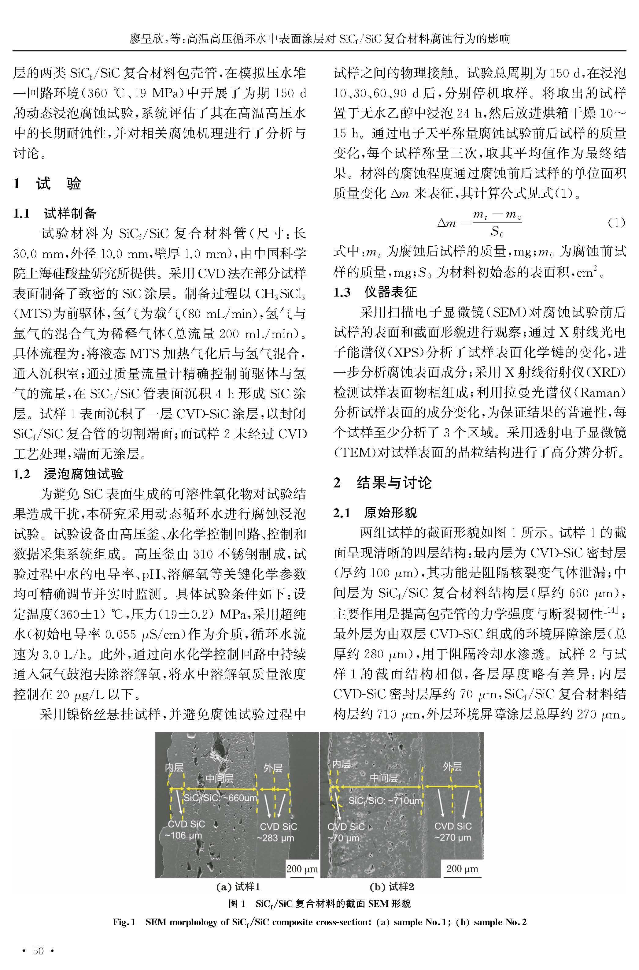 高温高压循环水中表面涂层对SiCf/SiC复合材料腐蚀行为的影响