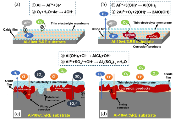 "将二元稀土铝合金Al-10wt.%RE(Ce、Nd、Y、La)放置在2个大气腐蚀试..."