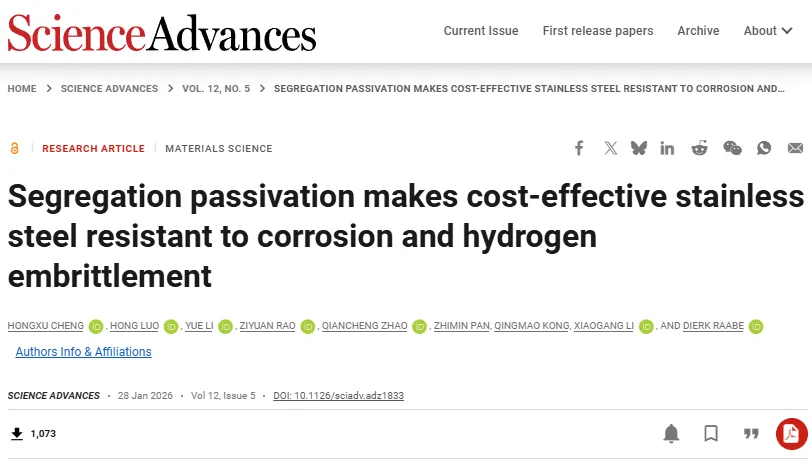 科学子刊,马普所Dierk Raabe:分离钝化使不锈钢具有抗腐蚀和氢脆能力