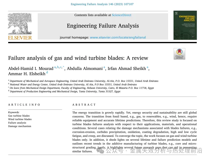 "本文系统综述了燃气轮机与风力涡轮机叶片的失效机制、寿命预测方..."