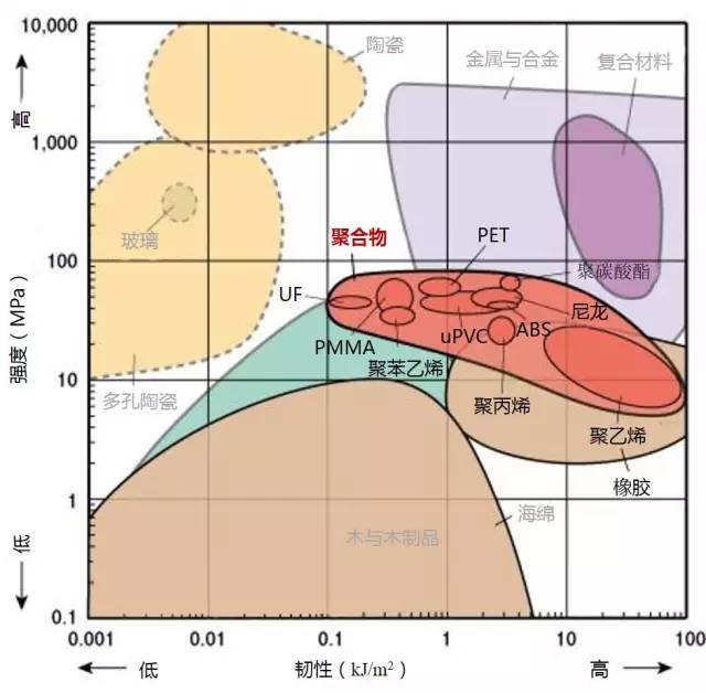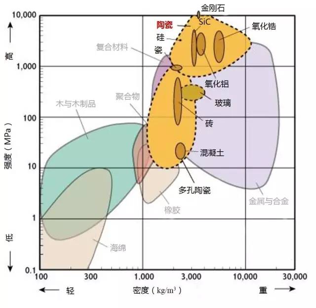 1.下图标识的强度为拉伸强度,除了陶瓷为抗压强度。