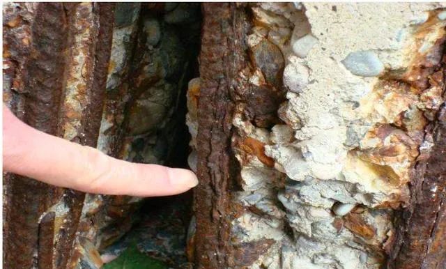 混凝土内的钢筋锈蚀属于电化学反应,钢铁本身就是一种比较容易生锈的金属,即便在空气中也会缓慢生锈,因此用于水中建筑的钢筋外表面都会特意制造一层致密的氧化膜,这样一来不易生锈腐蚀,但氯离子可以破坏钢筋表面的氧化膜,让容易生锈的铁基露出来,另外,氯离子在钢筋中形成腐蚀电池,加速腐蚀。