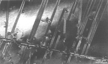 图 16 纯铁的铁素体中的位错线、位错网(TEM)