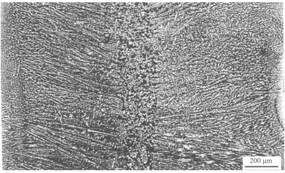 图4 铸造 304不锈钢薄带横截面的枝晶组织(OM)
