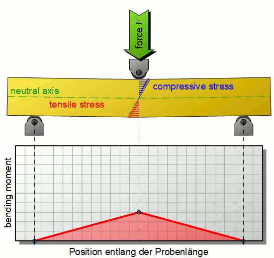 简支梁的弯矩应力:中性层两侧分别受拉应力和压应力