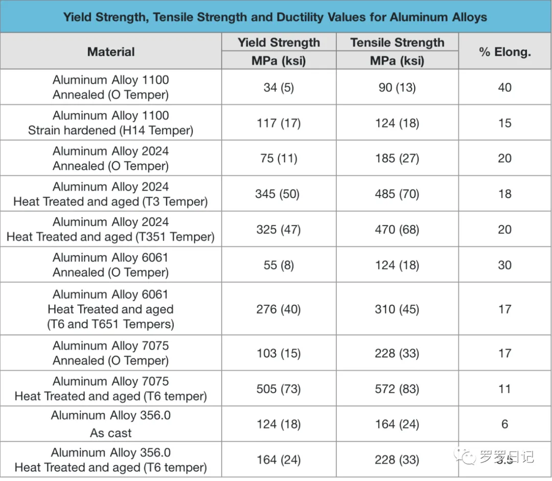 铝合金的屈服强度,抗拉强度,延展性