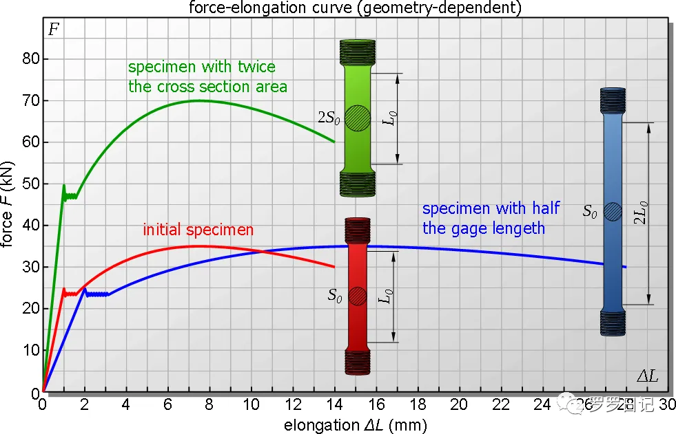 图1:伸长量和拉力的关系,跟几何尺寸有关系
