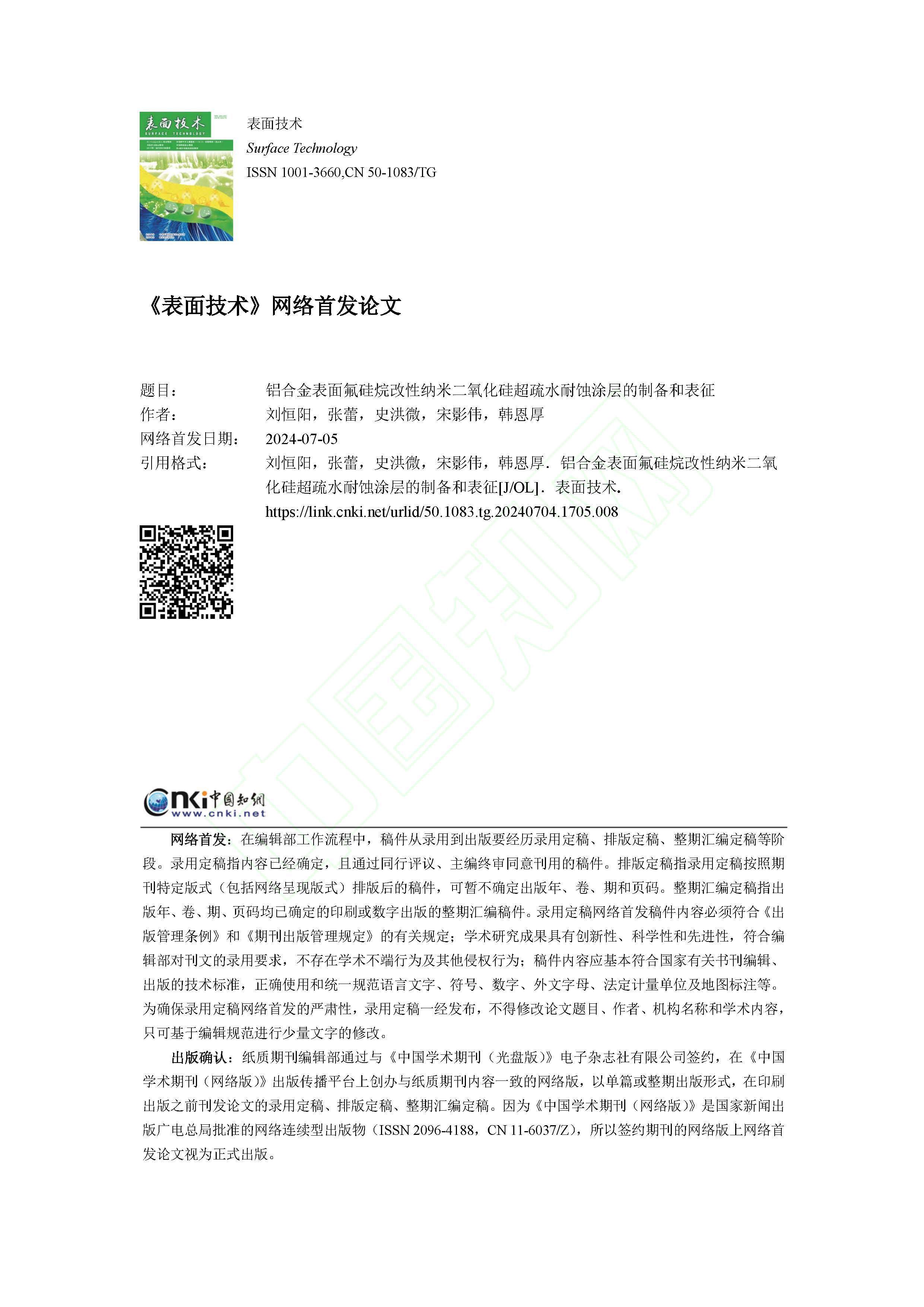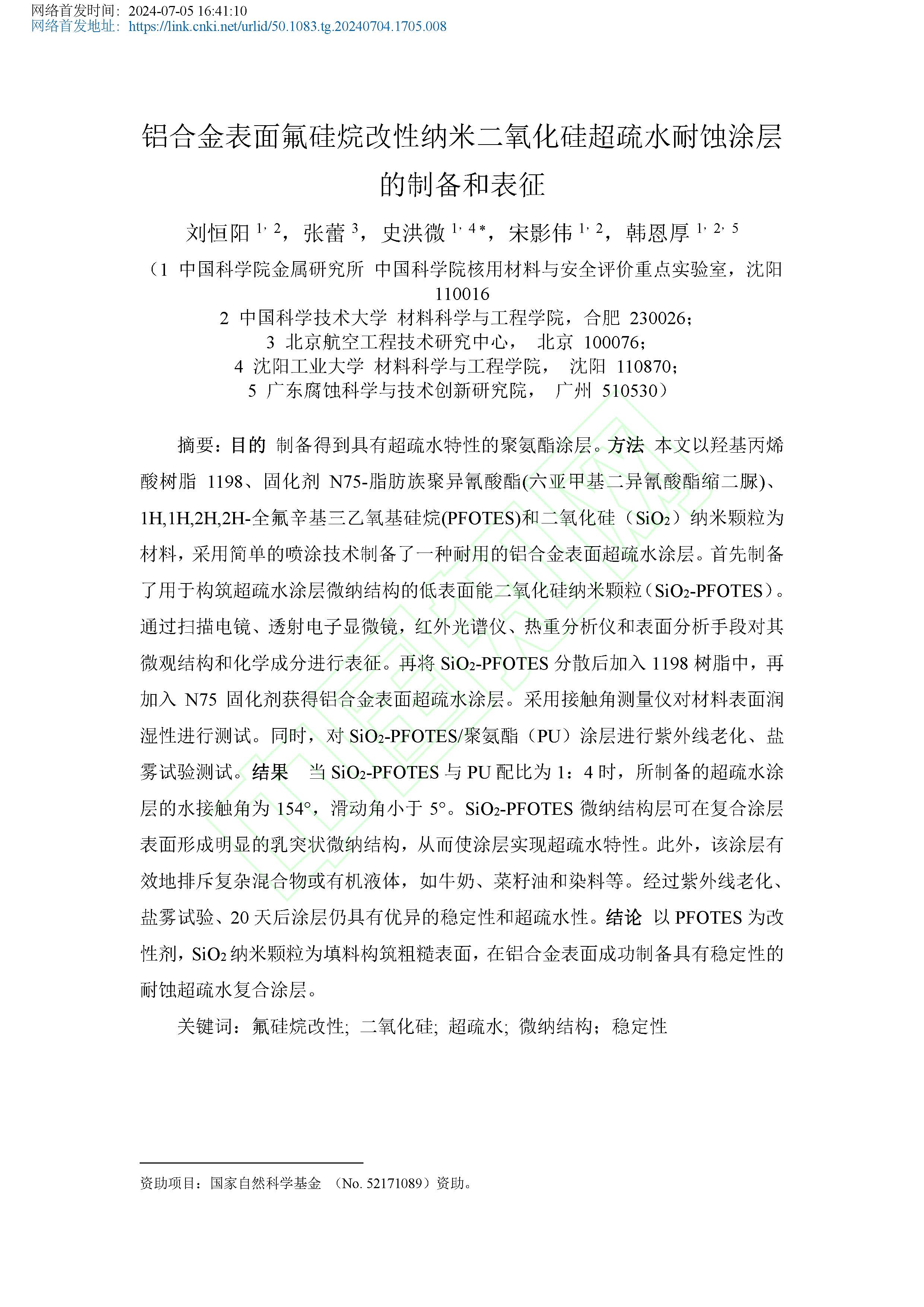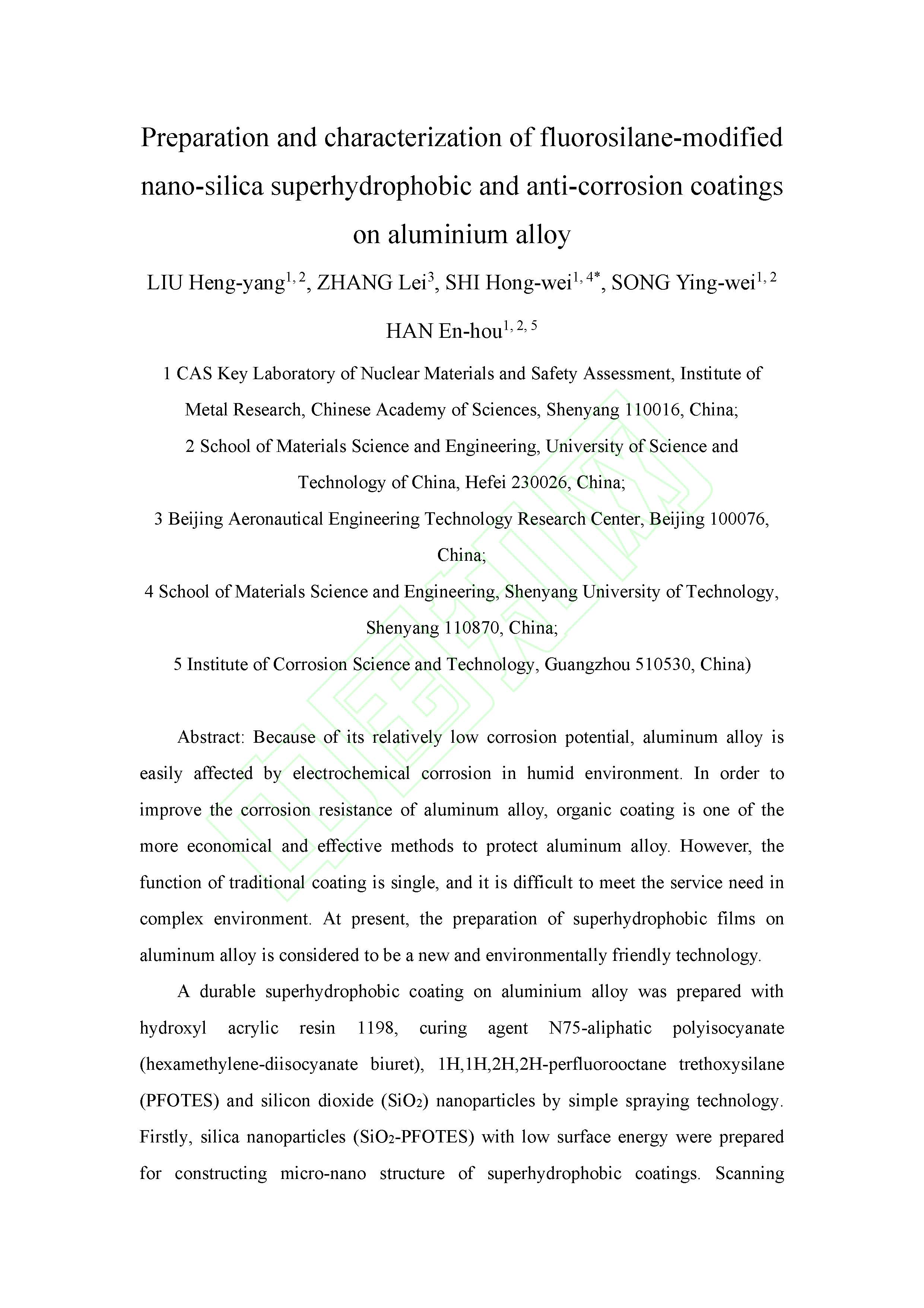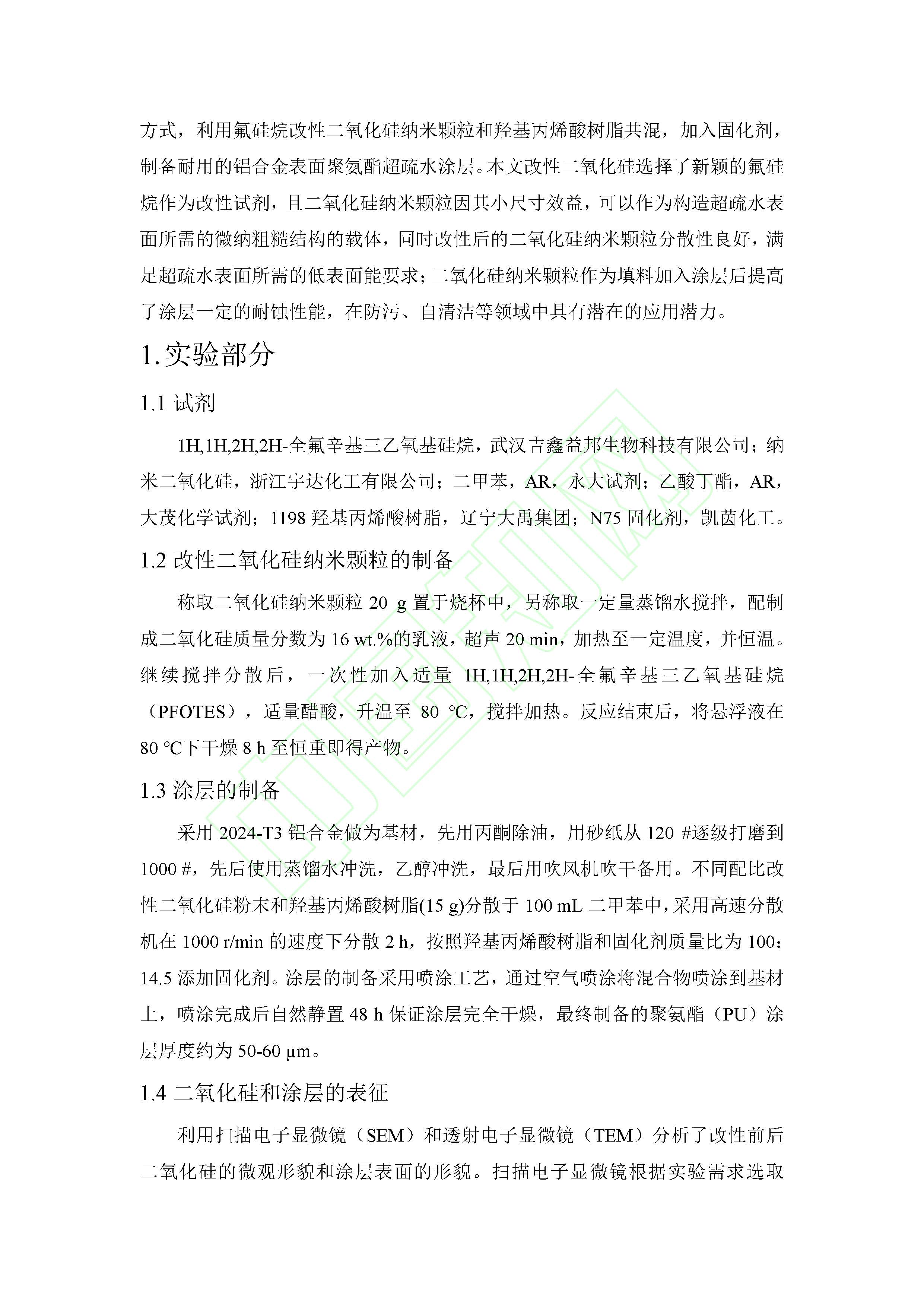 铝合金表面氟硅烷改性纳米二氧化硅超疏水耐蚀涂层的制备和表征