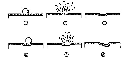 图1为空泡腐蚀产生点孔的机理过程。反应步骤如下:①在保护膜上形成气泡;②气泡迅速破灭使表面膜破裂;③裸露金属表面腐蚀并重新成膜;④同一点由于已形成台阶而更易形成气泡;⑤气泡再破灭和膜再破裂;⑥裸露金属表面进一步腐蚀并再次形成表面膜。这个过程反复进行,结果产生麻点或深孔。