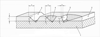 用特殊的刀在涂层上能得到对称楔形切割,如图1中的3;用特使的钻机在涂层上能得到锥形镗削,如图1中的4;用切削工具能得到斜面切口,如图1中的5。