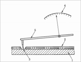 1——底材;2——涂层;3——针尖;4——刻度盘;5——连杆