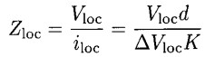 式中, K 为电解质溶液的导电率, d为两个铂微电极之间的距离, 则局部交流阻抗 Zloc下述关系式给出: