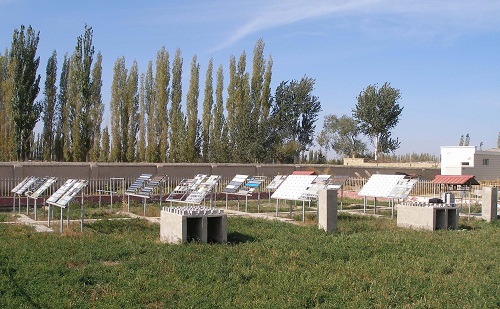 库尔勒大气试验站位于东经86°16′,北纬41°21′,海拔884.9米,地处新疆塔克拉玛干沙漠边缘,具有典型盐渍沙漠大气环境特征。试验场占地1000多平方米,有30个大气腐蚀试样架,3个供建材试样试验用的试验平台。