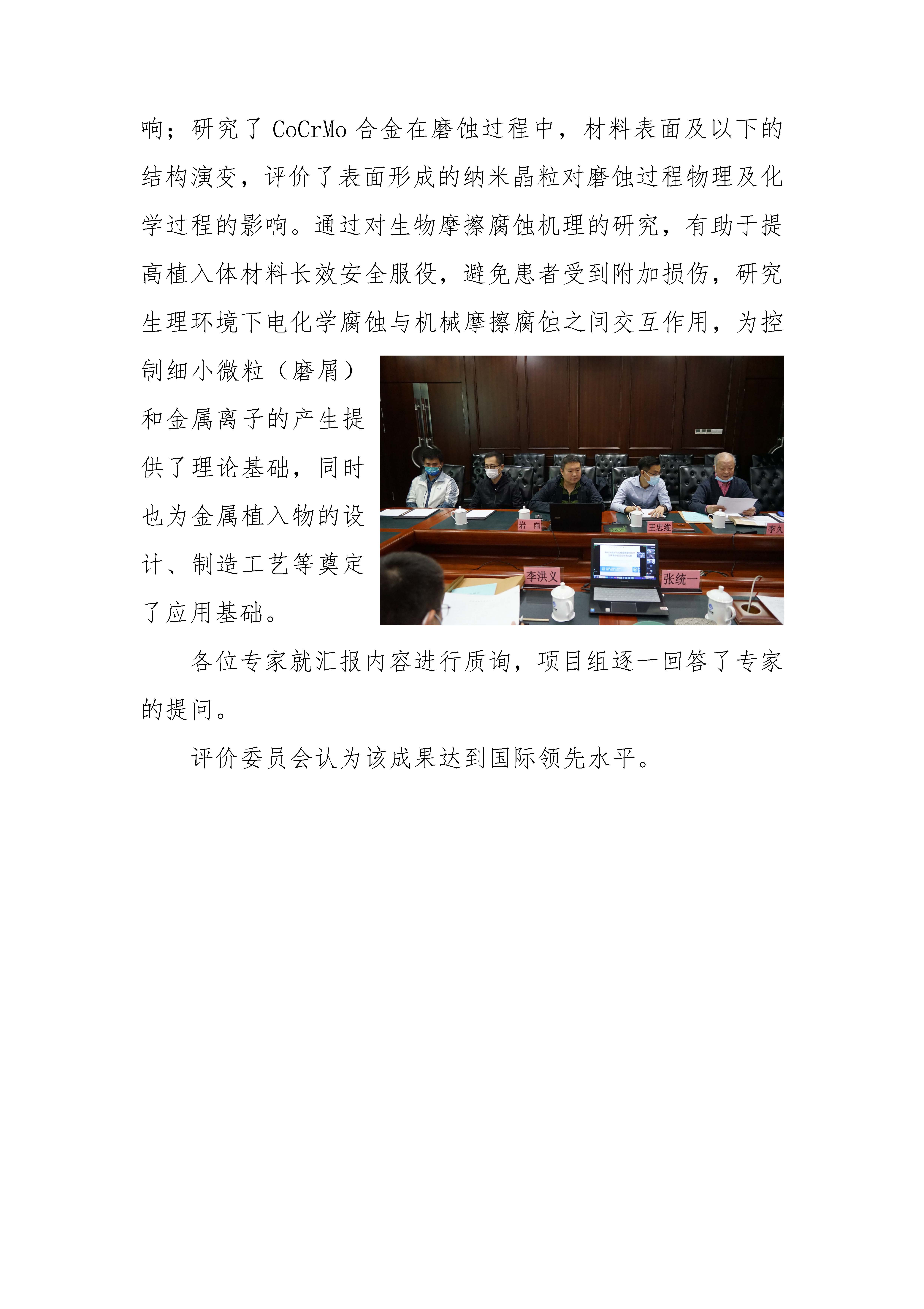 “电化学腐蚀与机械摩擦磨损在仿生环境中的交互作用机制”科技项目通过成果评价