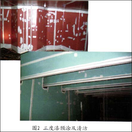 三度漆的预涂范围同二度预涂,检查控制漆膜厚度,偏低区域修补或修喷,修补或预涂前需确认舱内相对湿度及吸尘清洁状况达到规定要求,如图2所示。