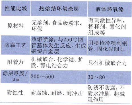 表1热熔结环氧涂层与液体环氧漆性能对比