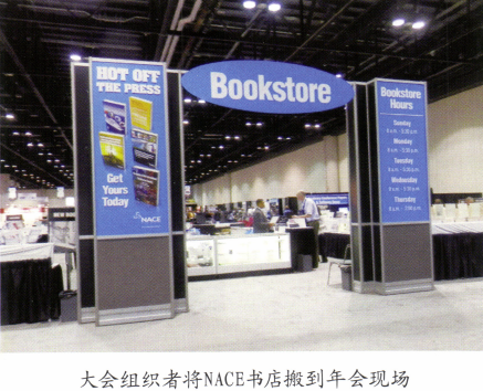 除了展览会,各种研讨会,各种工作会议,会场还设立NACE书店。在书店可以选购会议论文,NACE出版的书籍,以及服装,文具等多种NACE纪念品。