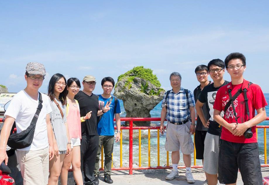 庄东汉教授与实验室全体同学在台湾小琉球花瓶石前合影