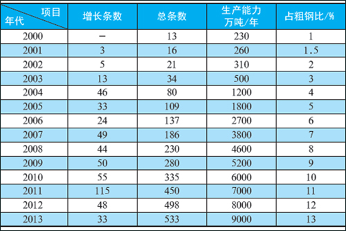 表1 中国带钢热镀锌线增长现状