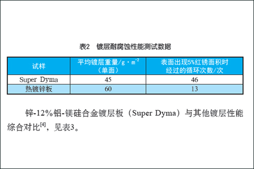 上述测试数据表明,Super Dyma 板的耐腐蚀性能是传统热镀锌层的3~5倍。