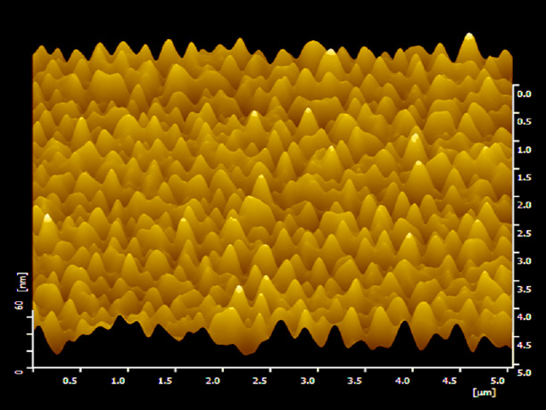 微结构防污材料的制备方法很多,如刻蚀翻模[21]、微压印或微塑铸[30]、溶胶-凝胶、气相沉积(图4)[31]、电纺、微相分离和分子自组装等。对于船体表面的大面积涂装,微相分离和分子自组装的制备方法更具有实用价值。一般来说,嵌段共聚高分子材料由两种或多种不同性质的单体段聚合而成,当单体之间不相容时,它们倾向于发生相分离,但由于不同单体之间有化学键相连,不可能形成通常意义上的宏观相变,而只能形成纳米到微米尺度的相区,这种相分离通常称为微相分离,不同相区所形成的结构称为微相分离结构[32]。将互不相容的高度分支含氟聚合物和线性聚乙烯乙二醇混合在一起,可产生一种具有微相分离结构的涂层材料,减少海洋生物如藤壶等的附着。PDMS-聚氨酯共聚物涂层体系在成膜过程中,也可微相分离形成一系列具有纳米结构的表面,可有助于微生物的脱附[33]。中船重工七二五所利用化学自组装的方法制备了具有仿海星表皮、贻贝壳体结构的微形貌材料(图5)。室内防污评价结果显示,通过控制微结构的形貌特征可以获得防污性能优异的防污材料,相对于刻蚀、溶胶-凝胶等微结构的构建方法,化学自组装方法具有控制简单,易于进行大面积施工等优点。