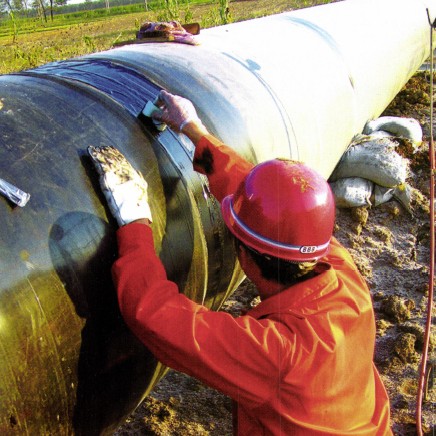 研制的新型补口底漆除了具有良好的防腐蚀功能外,还可同时满足湿膜、干膜安装热收缩带的要求,适合大口径管道的现场补口施工。