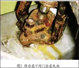 国内A电站口常防腐检查发现DEG核岛冷冻水系统阀门涂层破损,基体腐蚀严重,如图2所示。