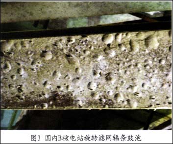 第10次大修对鼓泡的涂层采用环氧煤焦沥青漆进行满刷修补处理,替代了设计涂层。之后电站又采用1nterzone 954涂料对旋转滤网进行了全面的防腐处理,但结果发现辐条涂层的鼓泡现象仍然大量存在。