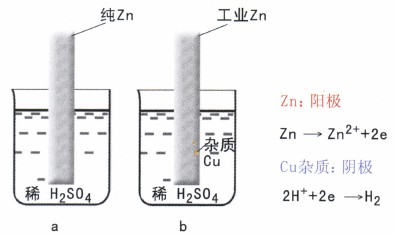 腐蚀发生的根本原因是由于环境中有氧化剂存在。而在工程中“材料/环境”组成的电极系统,由于种种原因(如材料成份等)使金属表面各处的电位不相等,统称为电化学不均匀性,从而形成腐蚀原电池,加速了腐蚀。例如工业锌,因其中含杂质(如Cu),存在着腐蚀电池,所以它的腐蚀速度要比纯锌大的得多如图1所示。