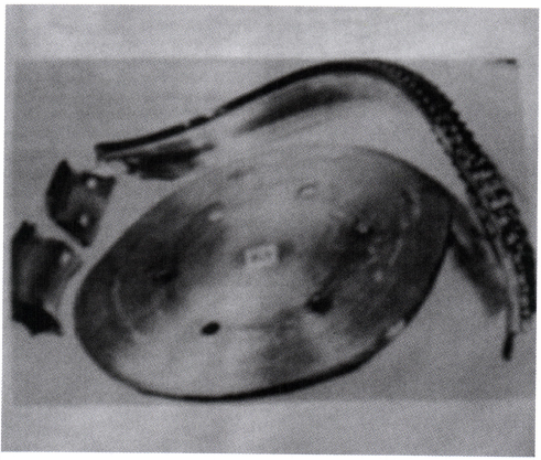 —小弹簧片镀锌改为镀镉,该处温度已超过320℃ ,镉镀层熔化甩于九级盘轮缘,在高速旋转,很高离心应力作用下,出现镉熔融金属作用下的应力腐蚀(简称为镉脆),导致九级压气机盘爆裂事故,如图1所示。