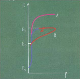 如果溶液中含C1ˉ,当极化电位升至孔蚀电位Eb(又称击穿电位)时,阳极溶解电流开始显著增大,不锈钢表面产生小孔。当极化电流密度达到预定值后,电位立即以一定速度回扫(BEp),电流再次回到钝态电流密度。此时,钝化膜己重新修复好,再次回到钝化状态,Ep称再钝化电位或保护电位。
