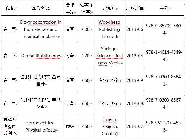 14. 国家自然科学基金:金属生物膜的形成机理及其润滑和耐磨蚀特性的研究,岩雨