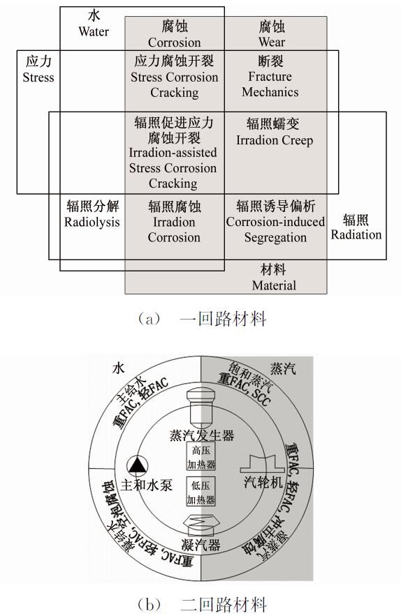 Fig.1 Significant degradation modes of materials in primary loop (a) and secomdary loop (b)