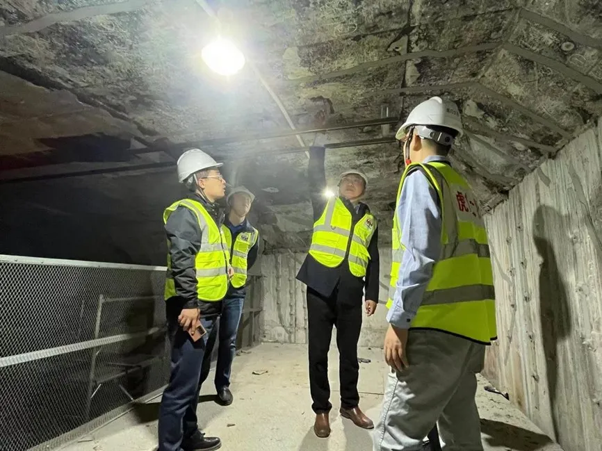国家材料腐蚀与防护科学数据中心李晓刚教授(右二)、程学群教授(右一)和刘超副教授(左一)在虎门大桥现场