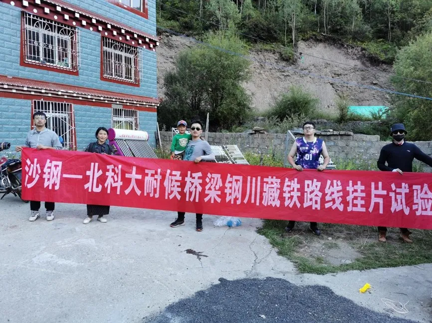 国家材料腐蚀与防护科学数据中心吴伟博士(左一)、刘超副教授(中)、朱仁政博士(右二)和徐学旭博士(右一)在川藏线户外实验现场