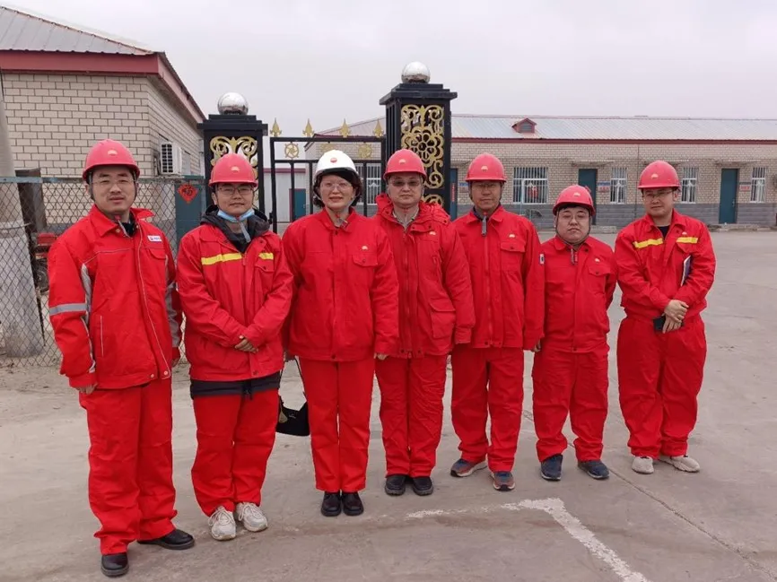 国家材料腐蚀与防护科学数据中心刘智勇教授(中)、刘超副教授(左一)和李清博士(左二)在大庆油田现场
